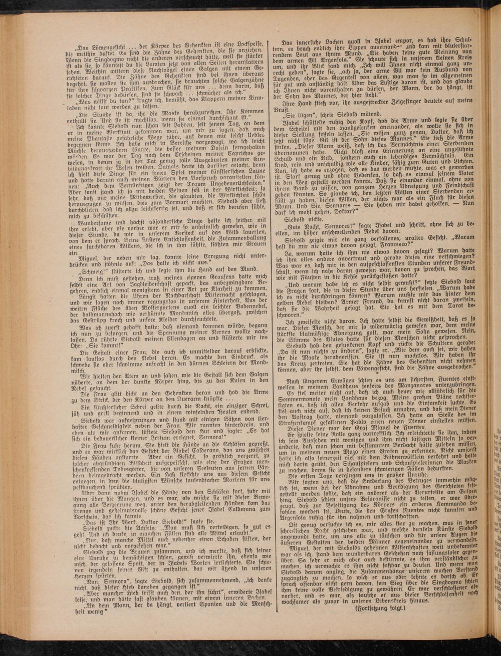 Miguel der mit Siebolds geheimen Wissenschaften weit unbekannter war als ich, stand dem wunderbaren Geschehen noch fassungsloser gegenüber. So sehr er mich aber auch bestürmte, es ihm verständlicher zu machen, ich vermochte es ihm nicht faßbar zu deuten. Und wenn man Siebold darum anging, die Zusammenhänge unserem wachen Verstanu zugänglich zu machen, so wich er aus oder lehnte es barsch ab er sprach offenbar nicyk gern davon, fein Sieg über die Singdogmo |anc ihm keine volle Befriedigung zu gewähren. Cr war verschlossener aw vorher, und es war, als lausche er aus dieser Verschlossenheit noaj wachsamer als zuvor in unteren Lebenskreis hinaus.