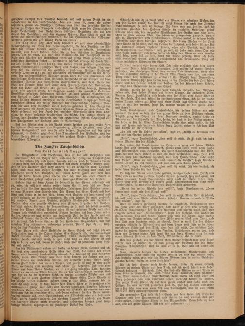 Nein, Gundermann und Tausendschön, die beiden blühen nie mit. fammen. Es war so, daß ihn eine große Liebe zu dem Mädchen erfaßte. Täglich ging der Jäger an ihrer Kammer vorüber, nachts legte er Blumen auf die Schwelle der Tür, solche, die hoch in den Felsen wachsen, die holte er für sie. Aber Tausendschön dankte ihm nicht dafür, sie saß nur und spann und hatte ein kaltes Herz. Zuletzt nahm er sich den Mut und klopfte an ihr Fenster.