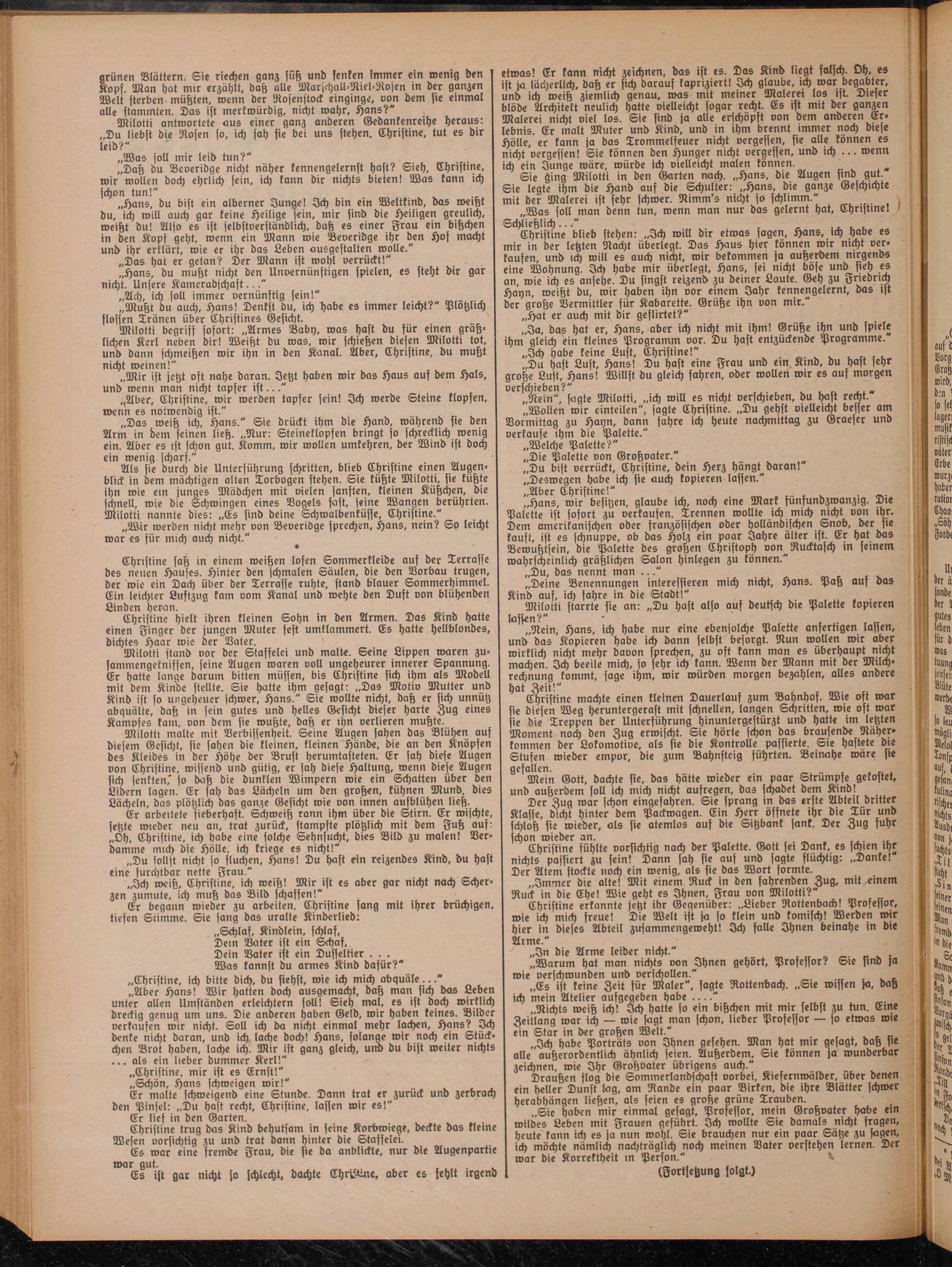 „Wollen wir einteilen", sagte Christine. „Du gehst vielleicht besser am Bormittag zu Hayn, bann sahre ich heute nachmittag zu Graeser unb verlause ihm bie Palette."