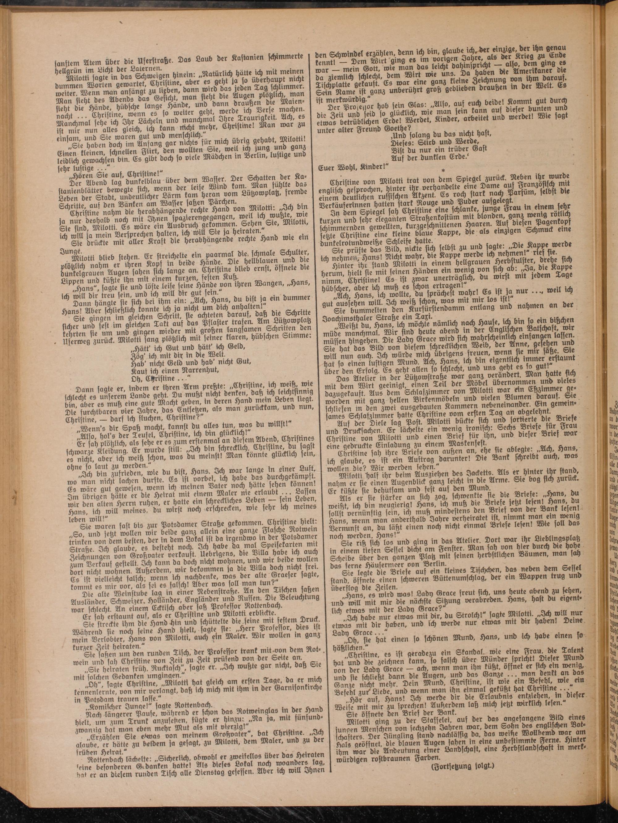 Vernunft an, du läßt einen noch nicht einmal Briefe lesen! Wie |ou oas ""^Sie^rih sich^ los und ging in das Atelier. Dort ux>r >hr Lieblingsplatz in einem tiefen Sessel dicht am Fenster. Man sah von hier durch ine hohe Schribe über Den ganzen Platz mit seinen herbstlichen Baumen, man sah ^enÄ Nchch-n. das neben dem Sessel