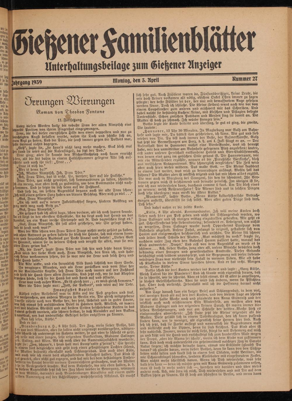 Unterhaltungsbeilage zum Giehener Anzeiger