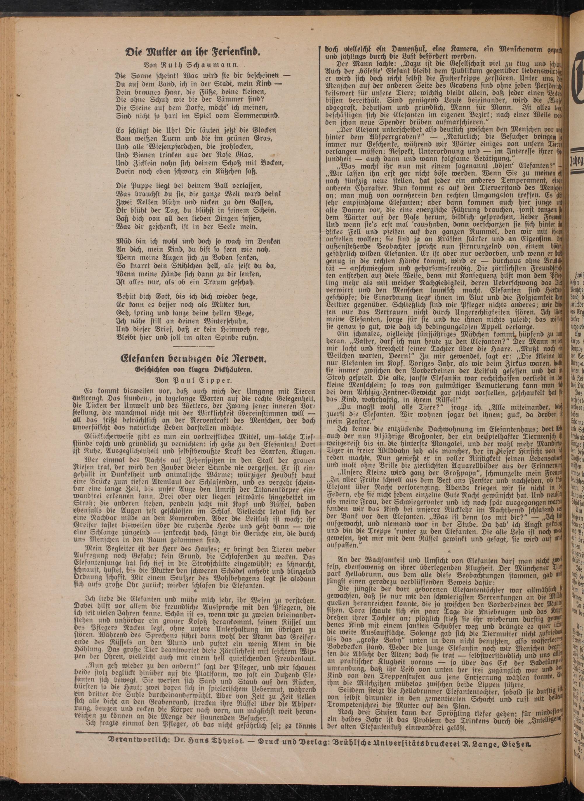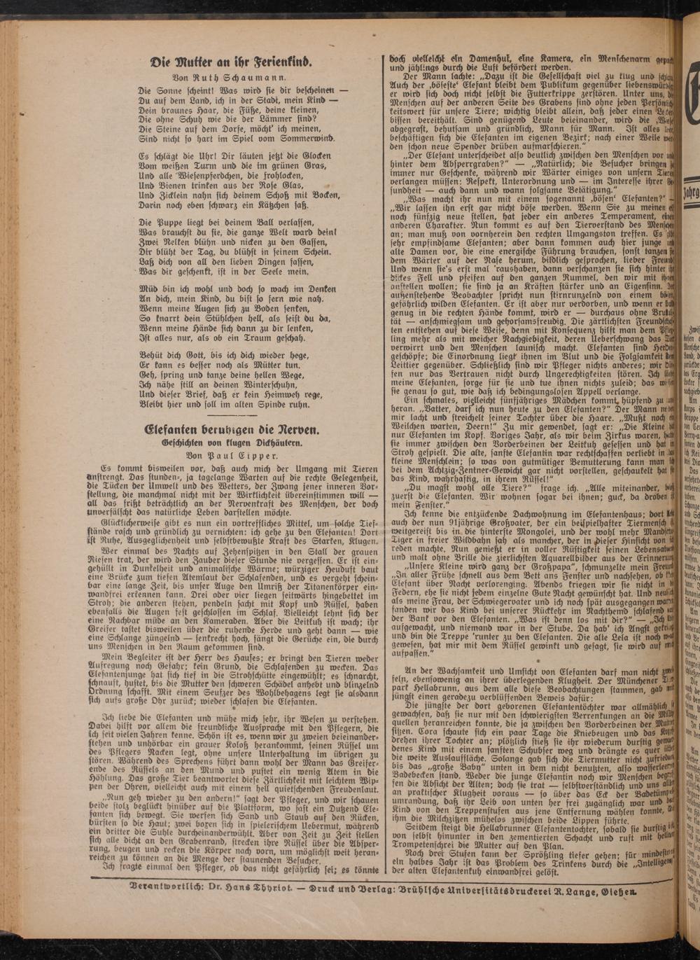 Verantwortlich: Dr. HanS Thhriot. — Druck unbVerlag: Brühlsche Universität«druckereiR.Lange, Gießen.
