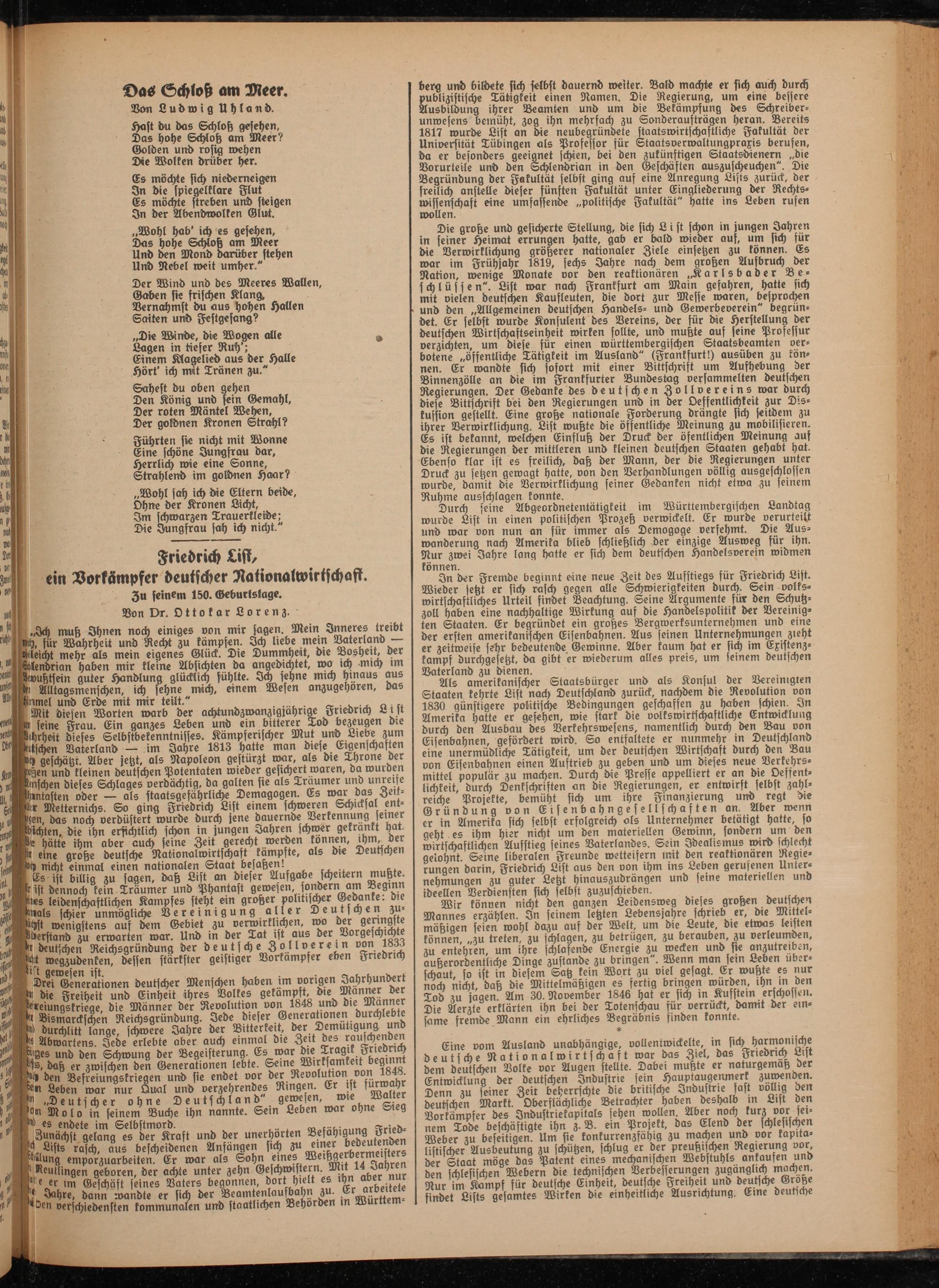 Friedrich List, ein Vorkämpfer deutscher Nationalwirtschaft. Zu seinem 150. Geburtslage.