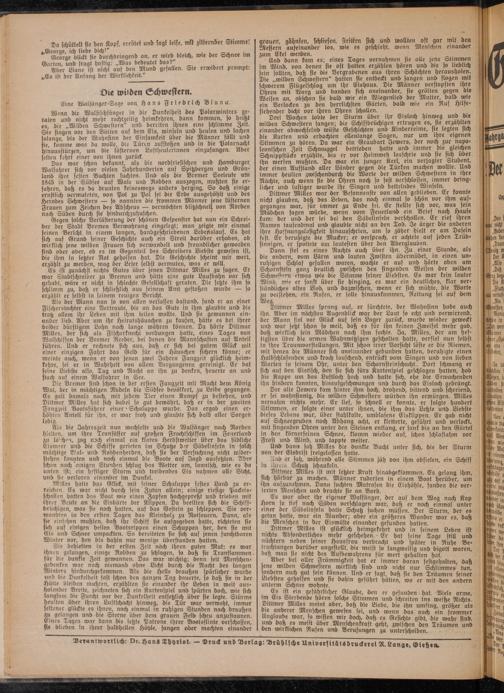 Verantwortlich: Dr. Hans Thhrlot. - Druck und Verlag: Brühlsche Universitätsdruckerei R. Lange, Gießen.