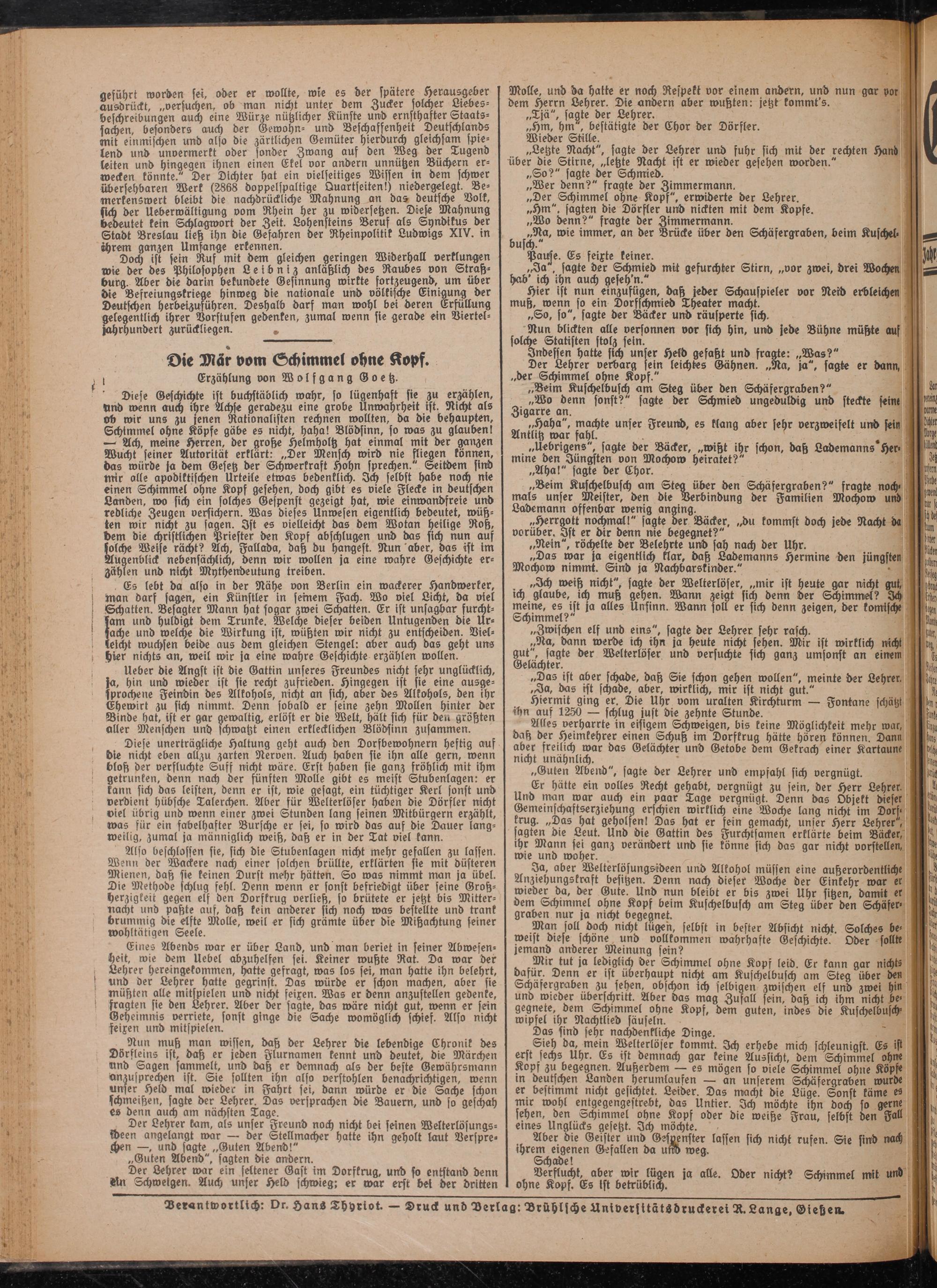 Deranttvortlich: Dr. Han» Thyrtot. - Druck und Derlag: Brühlsche Aniversttätsdruckerei «.Lange, Gießen.