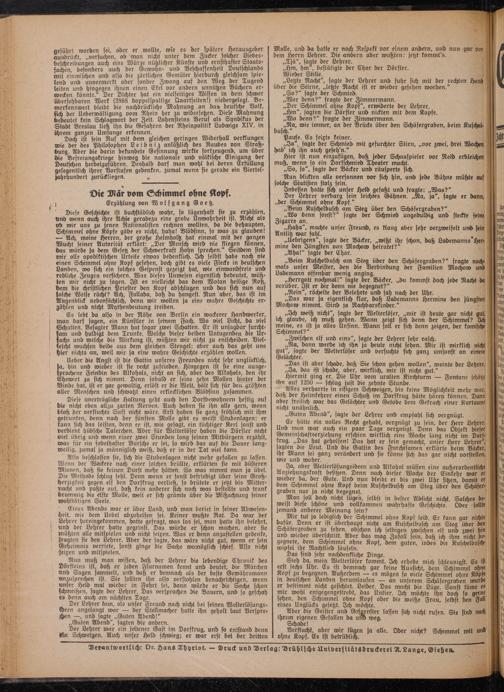Der Lehrer verbarg sein leichtes Gähnen. „Na, ja", sagte er bann, „der Schimmel ohne Kopf."