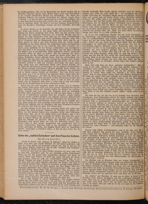 lieber die „nacktenTatsachen" und den Ginn des Lebens.