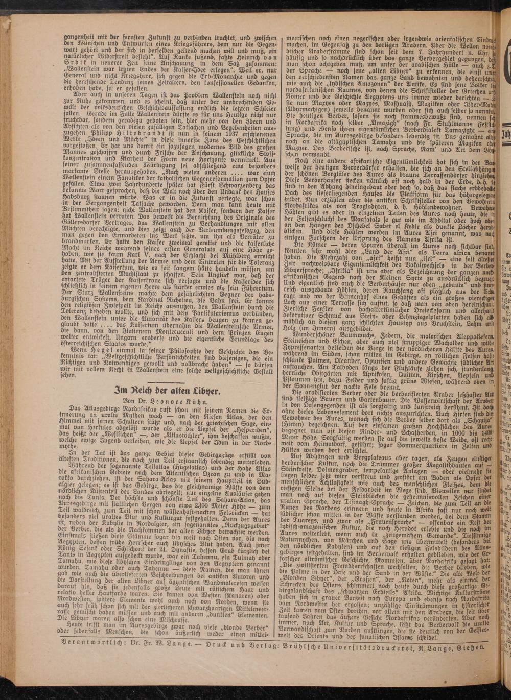 Druck und Verlag: Brühlsche Universitätsdruckerei, R. Lange, Gießeo.