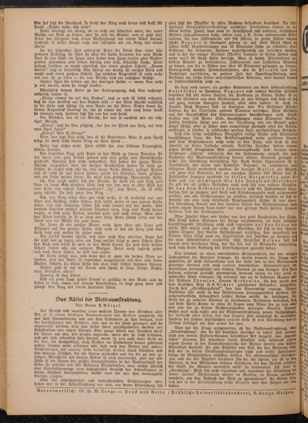 Verantwortlich: Dr. Fr. W. Lange. — Druck und Verla