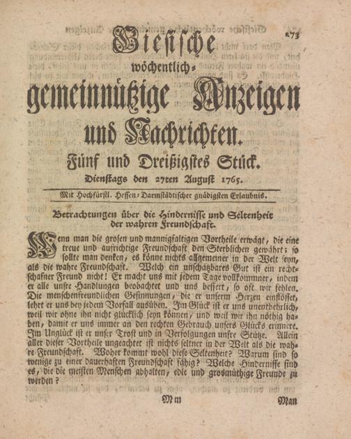 Giessische wöchentliche gemeinnützige Anzeigen und Nachrichten