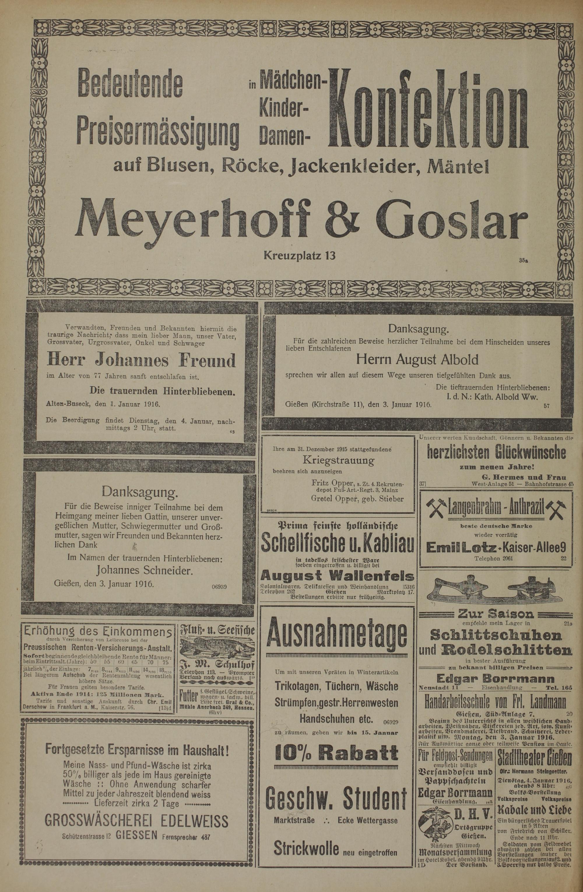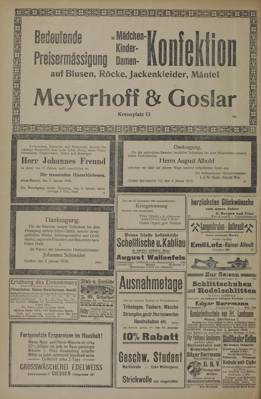 3.1.1916 Erstes Blatt