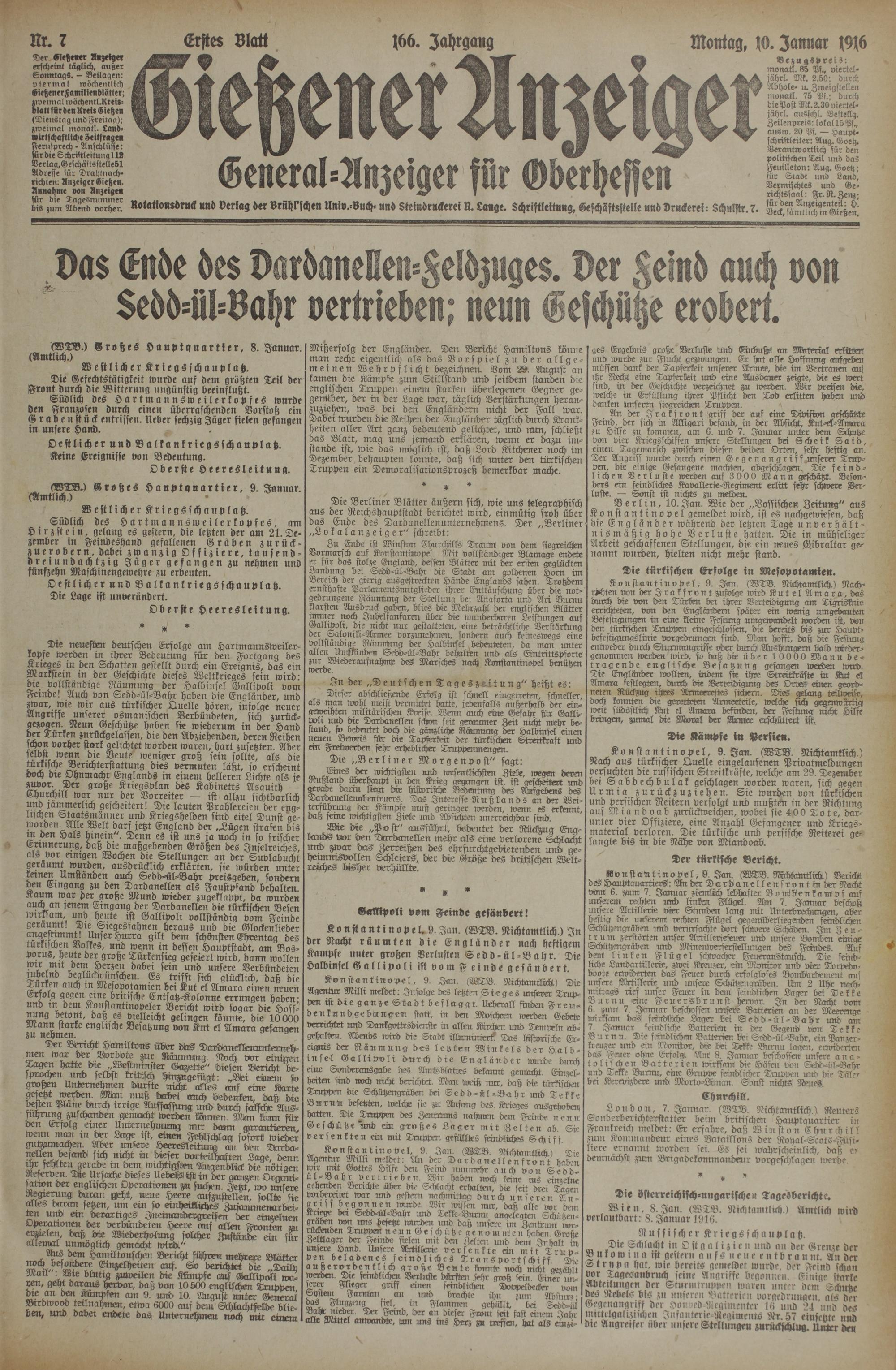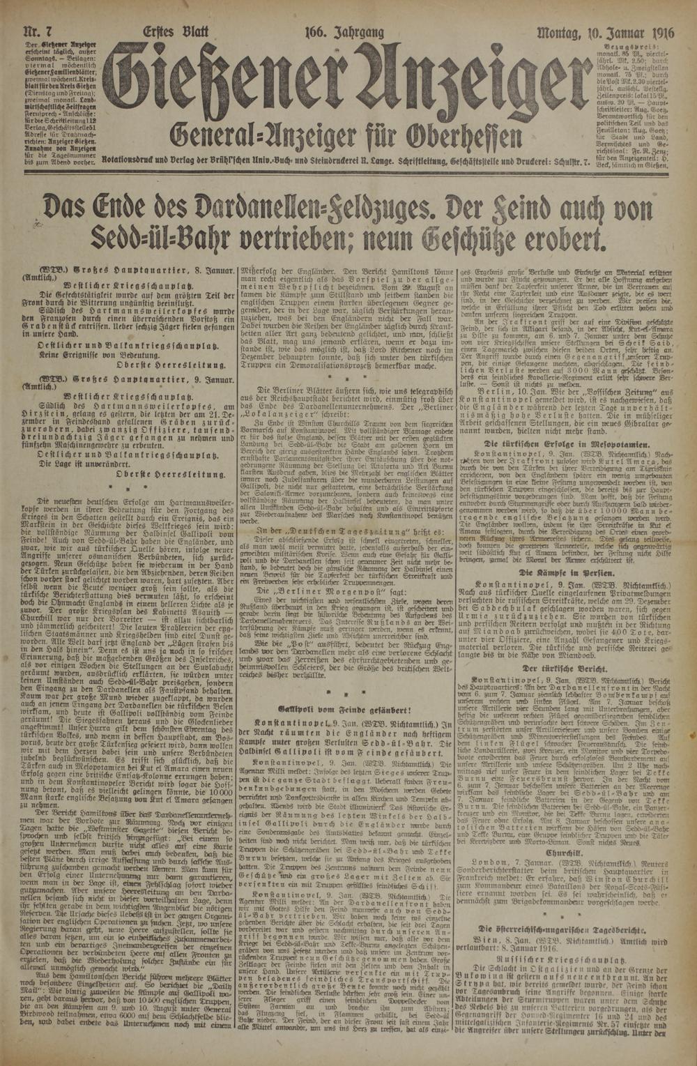 10.1.1916 Erstes Blatt