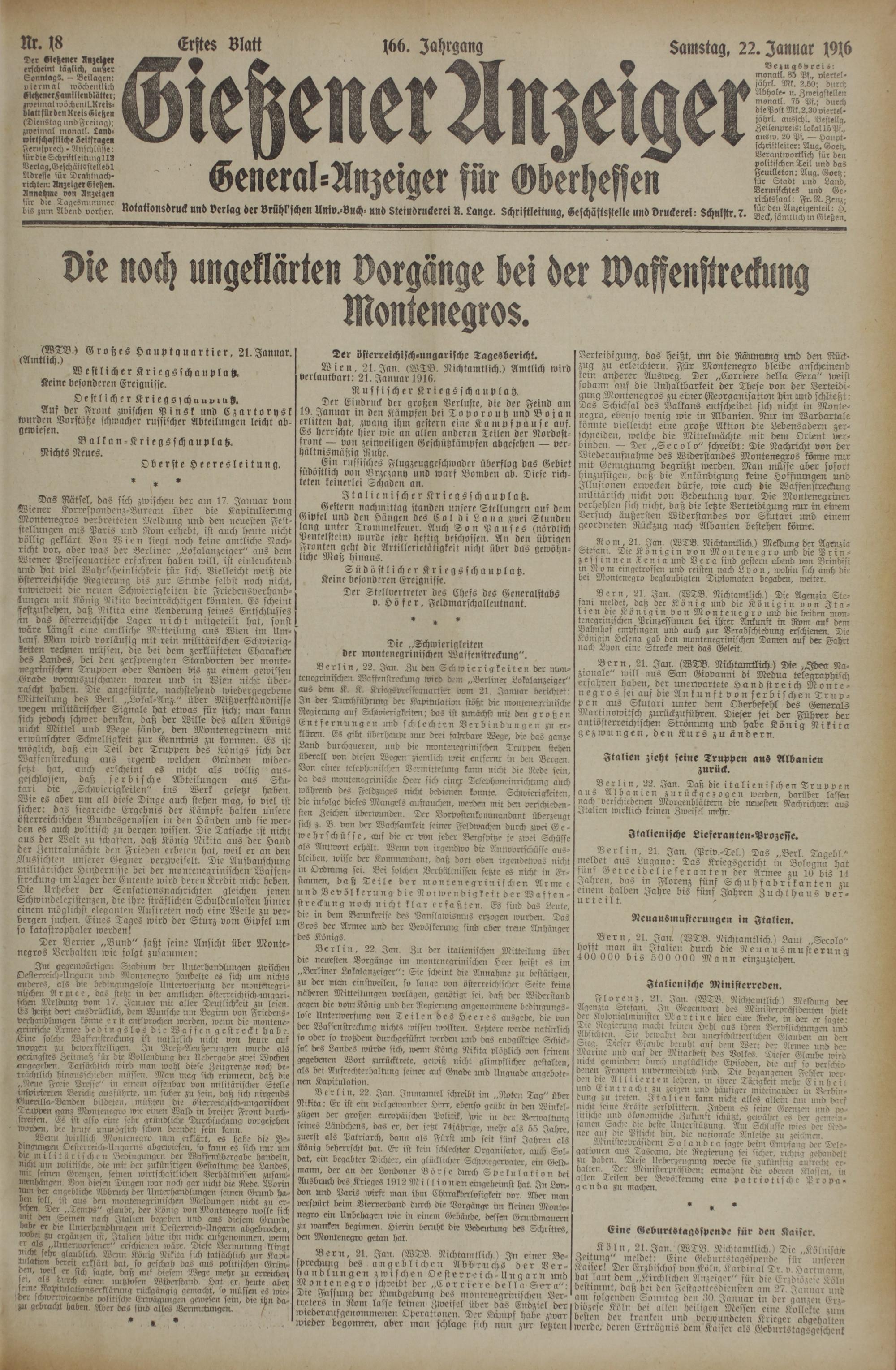22.1.1916 Erstes Blatt