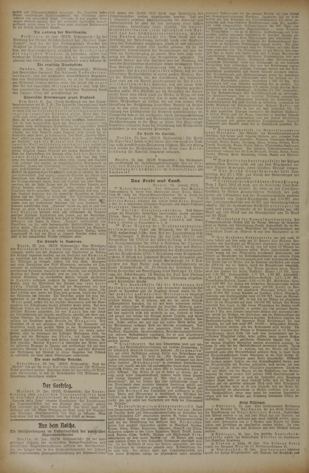 25.1.1916 Erstes Blatt