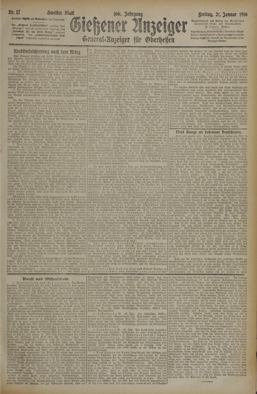 21.1.1916 Zweites Blatt
