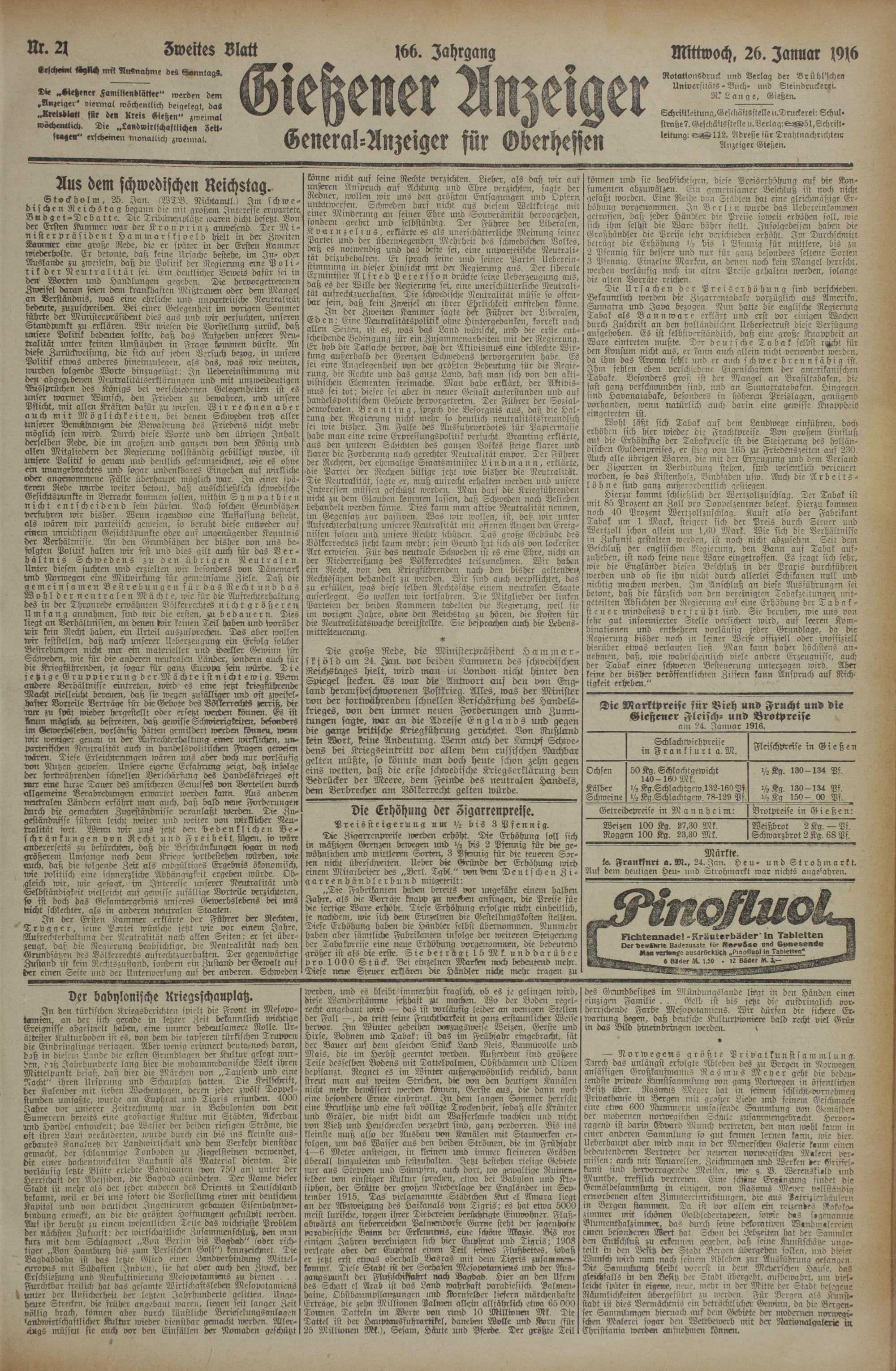 26.1.1916 Zweites Blatt
