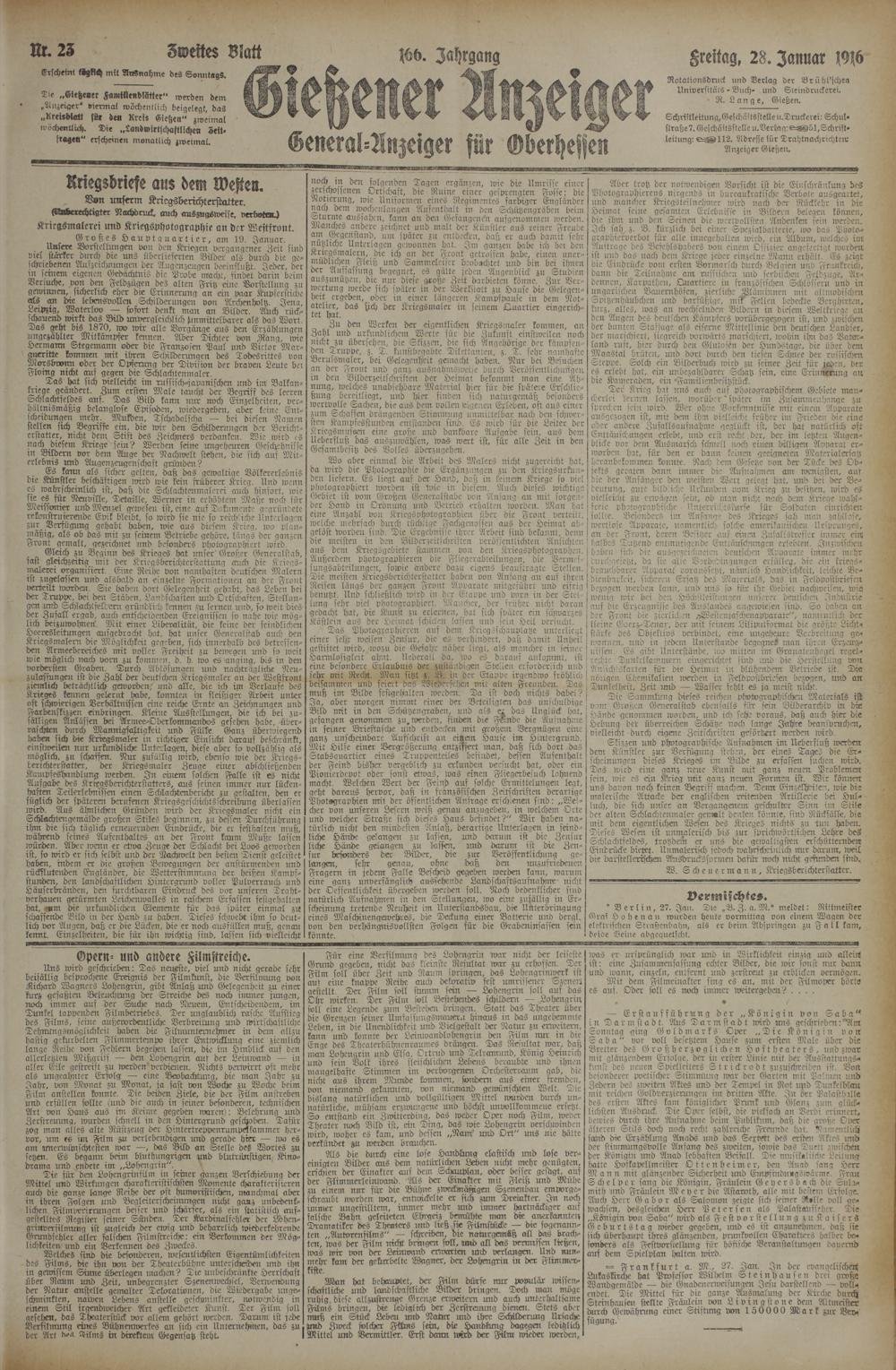 28.1.1916 Zweites Blatt