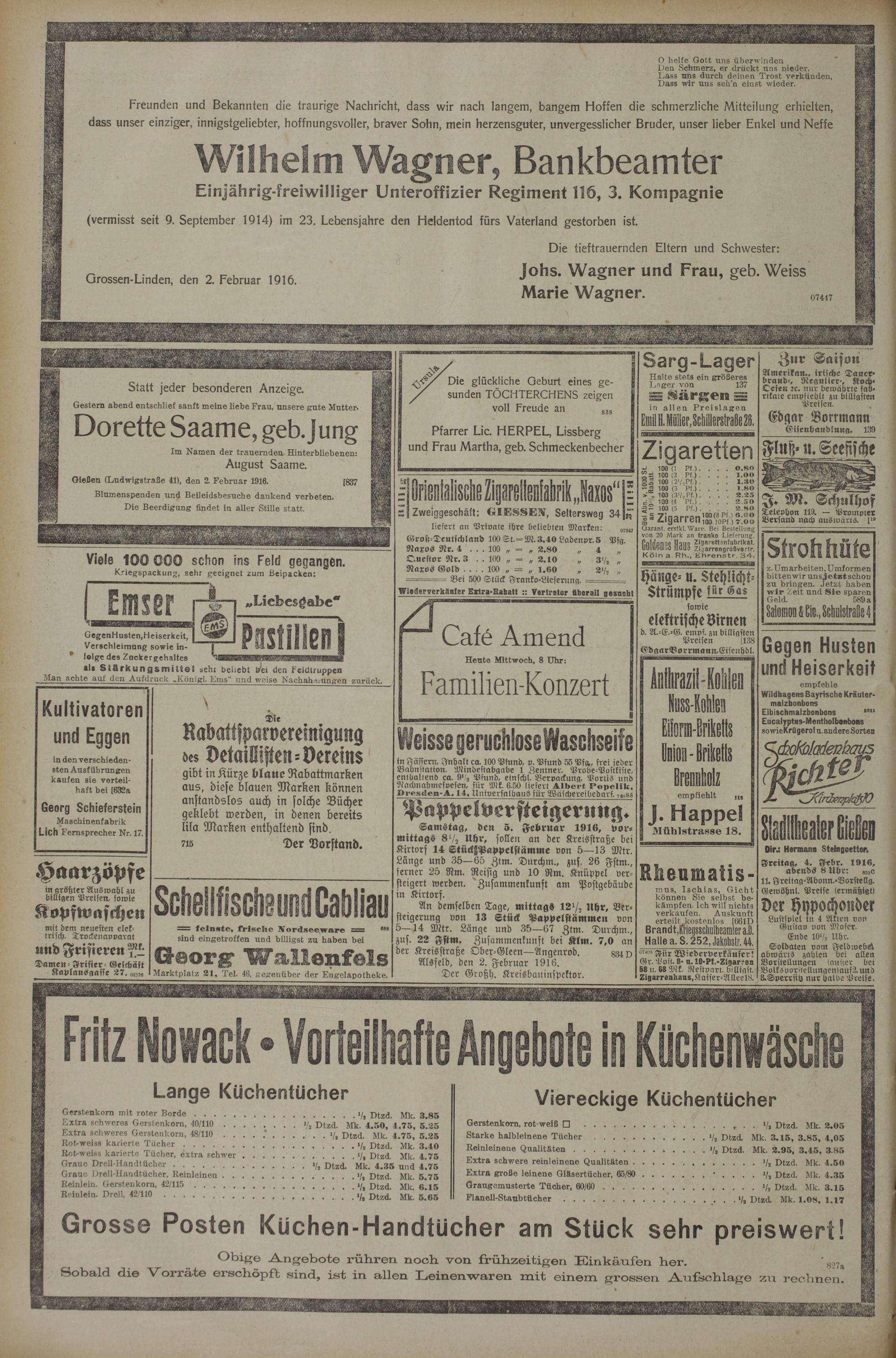 2.2.1916 Erstes Blatt