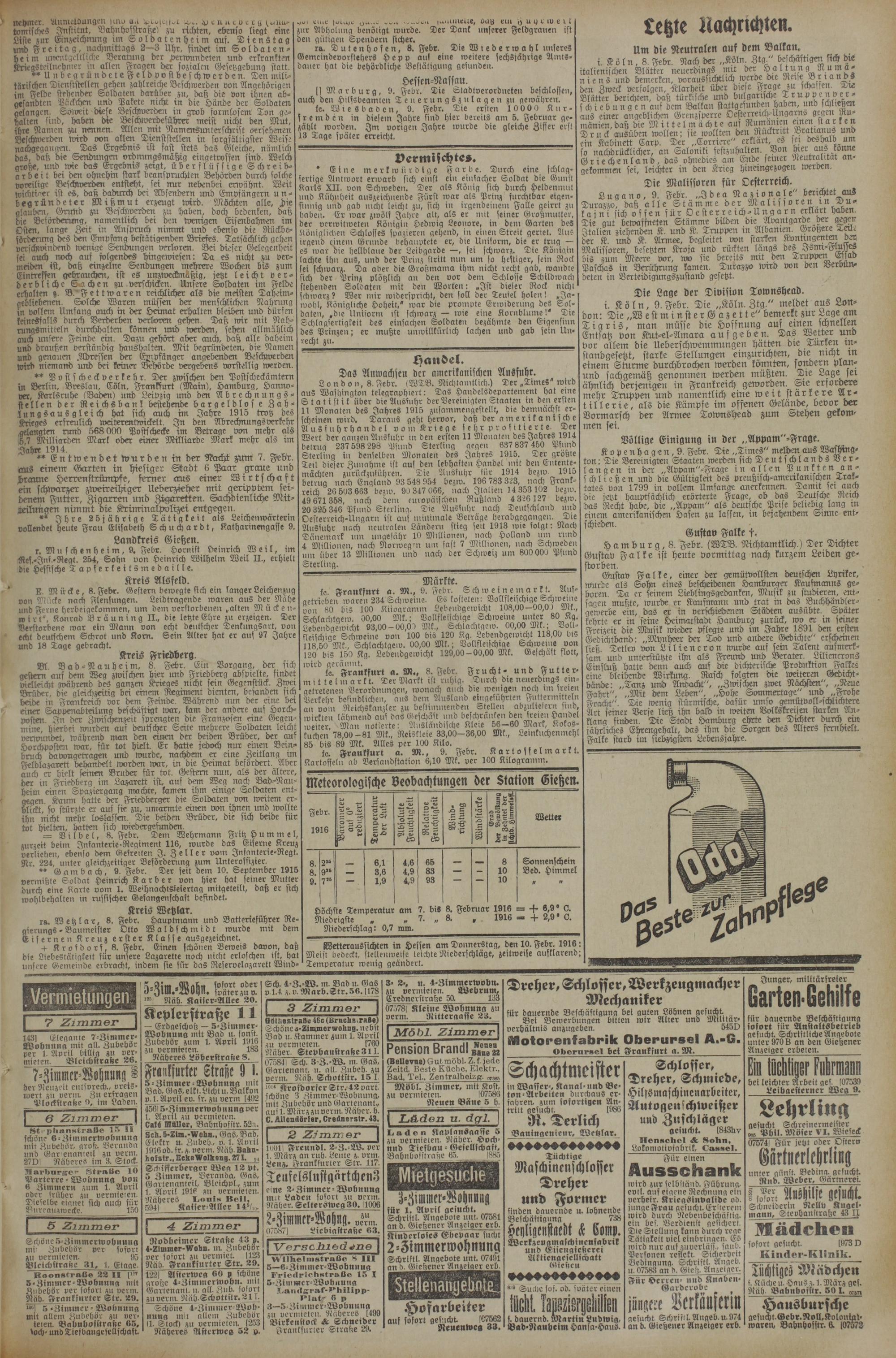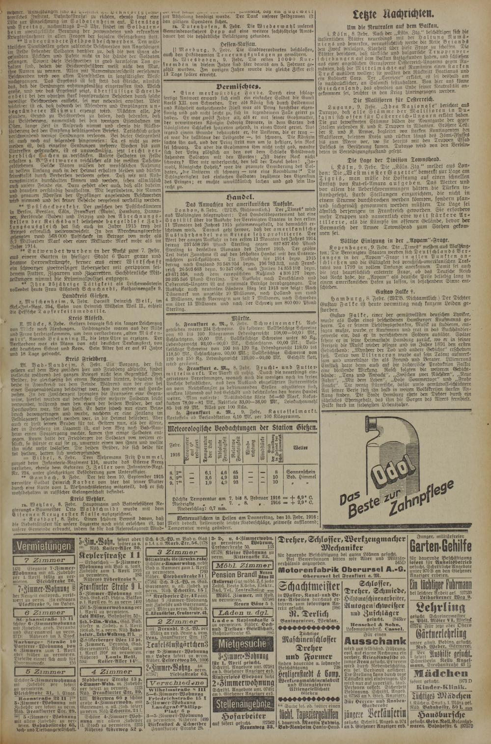 9.2.1916 Erstes Blatt