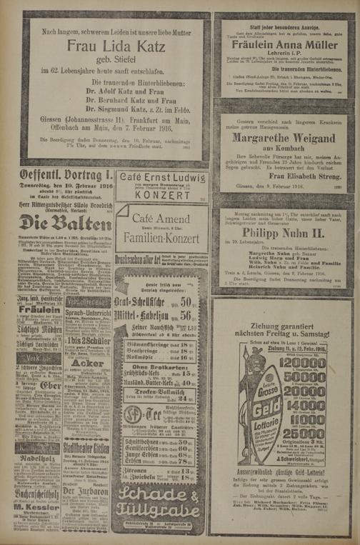 9.2.1916 Erstes Blatt