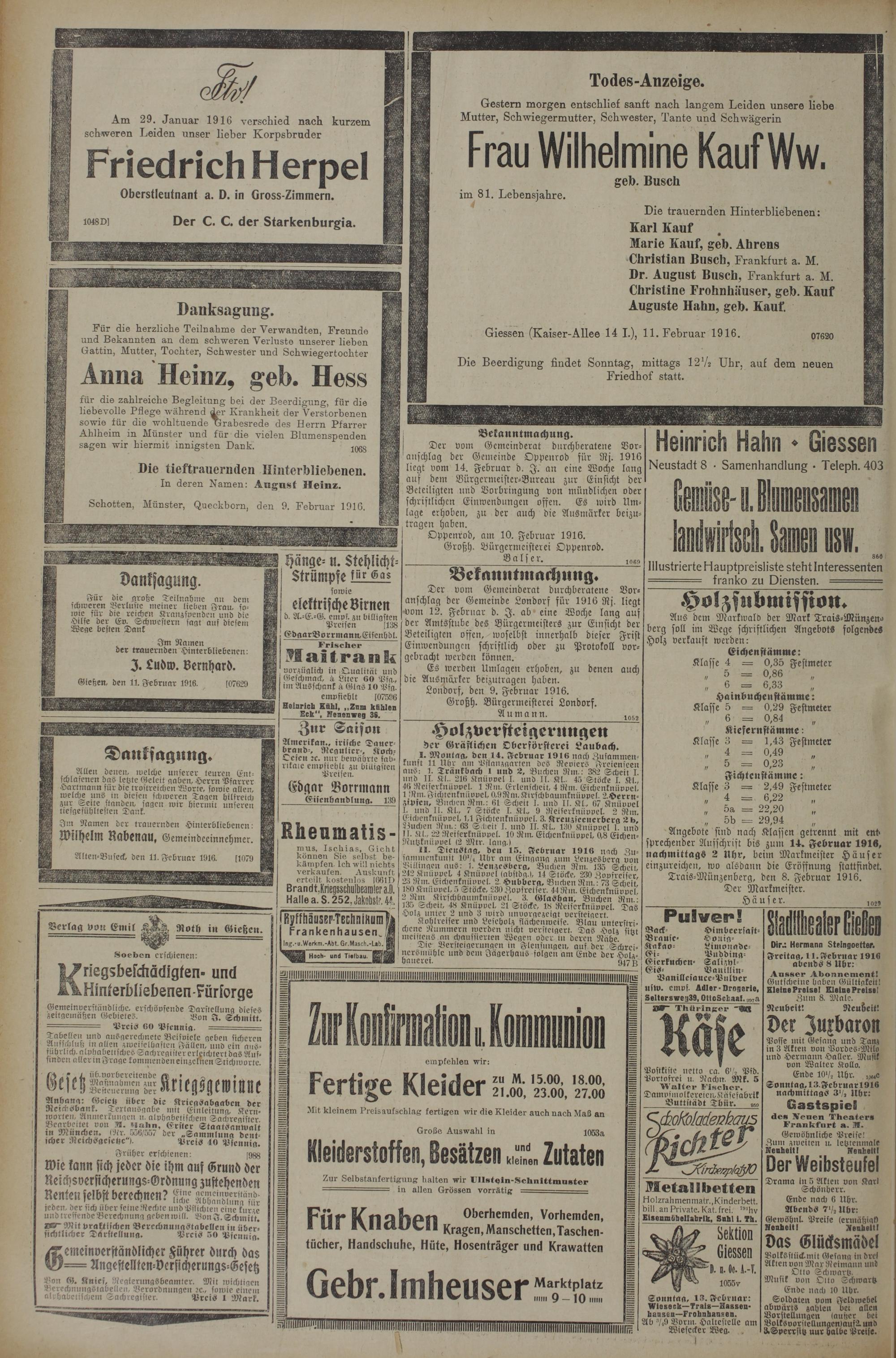 11.2.1916 Erstes Blatt