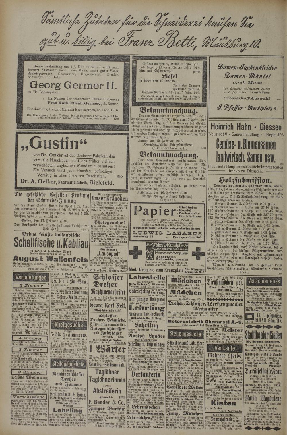 17.2.1916 Erstes Blatt