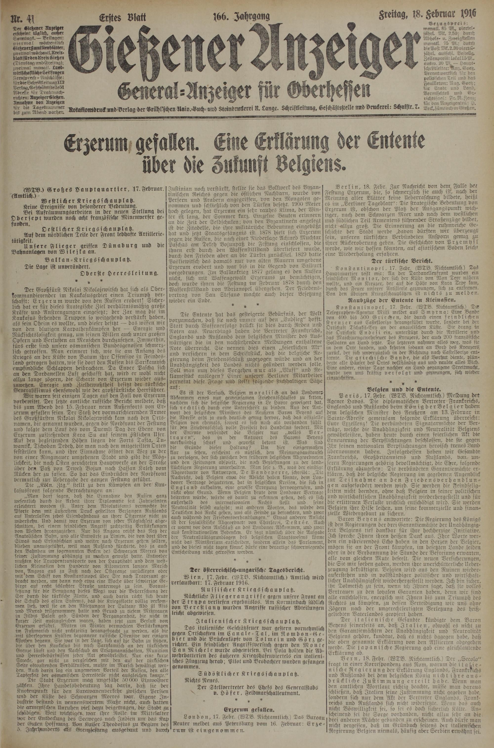 18.2.1916 Erstes Blatt