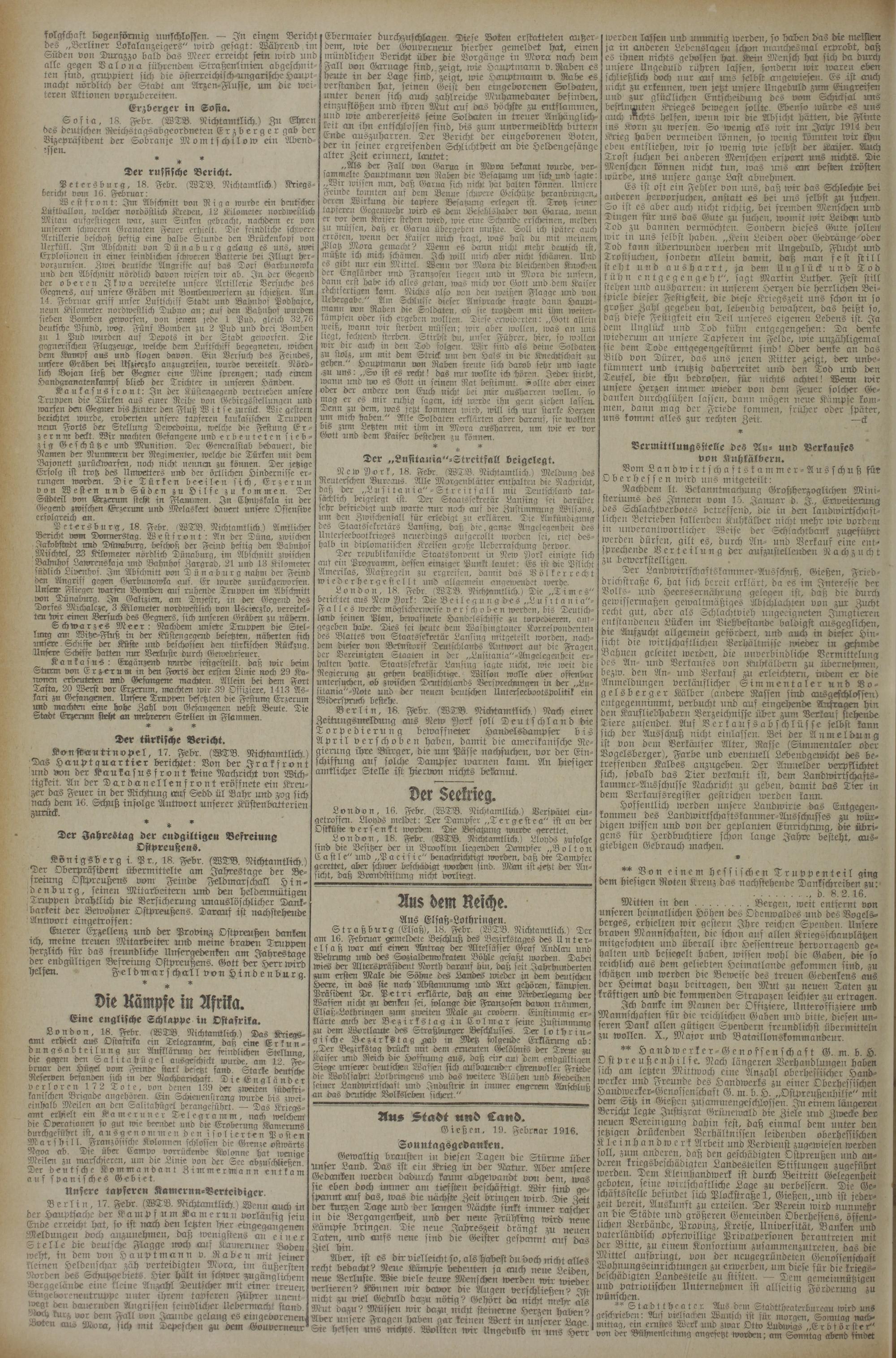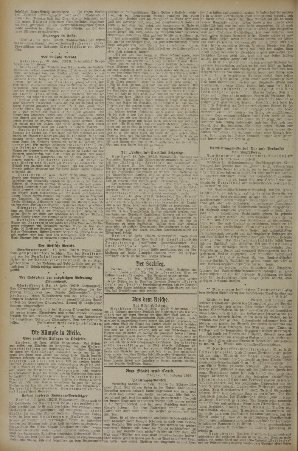 19.2.1916 Erstes Blatt