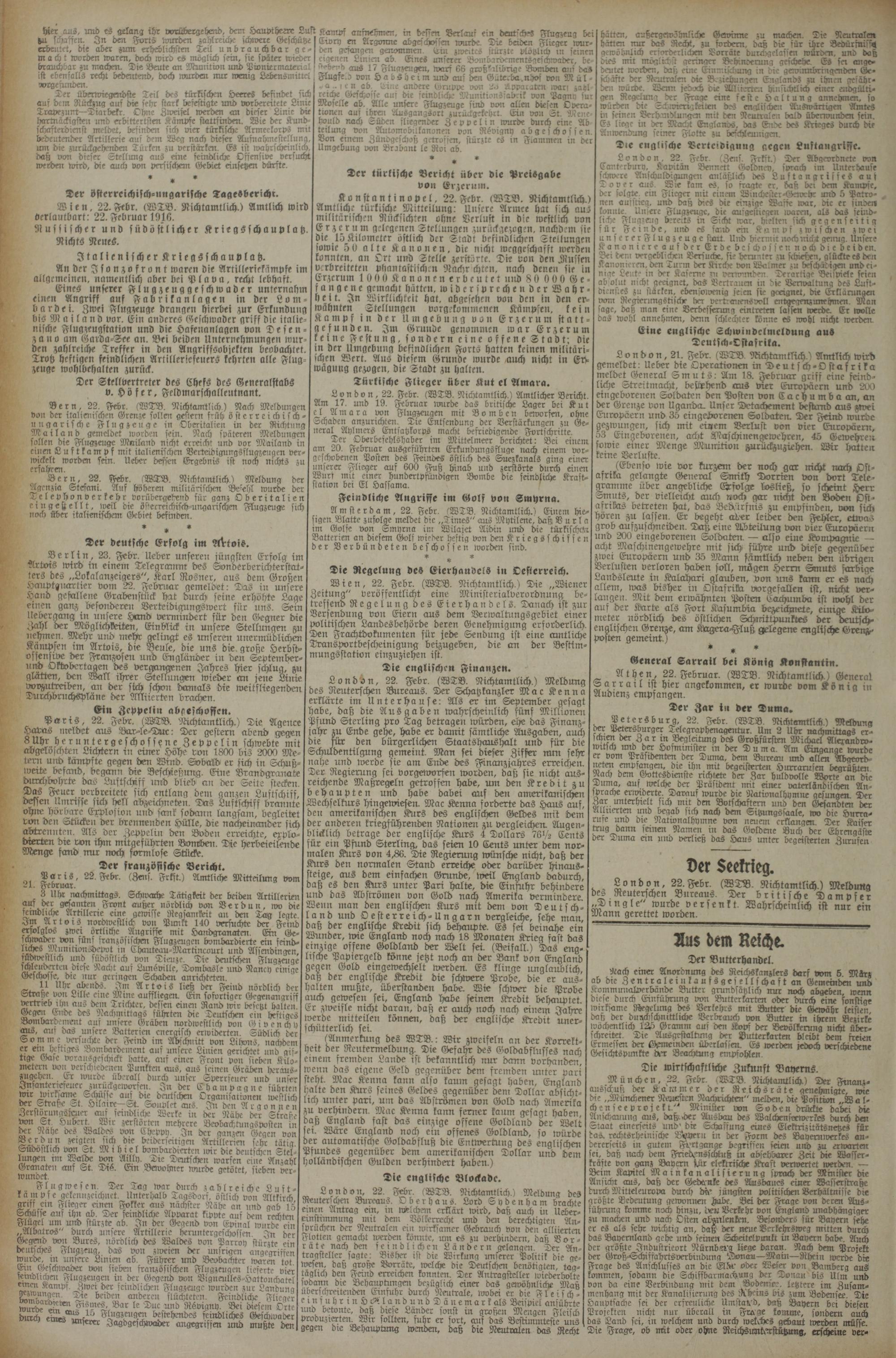 23.2.1916 Erstes Blatt