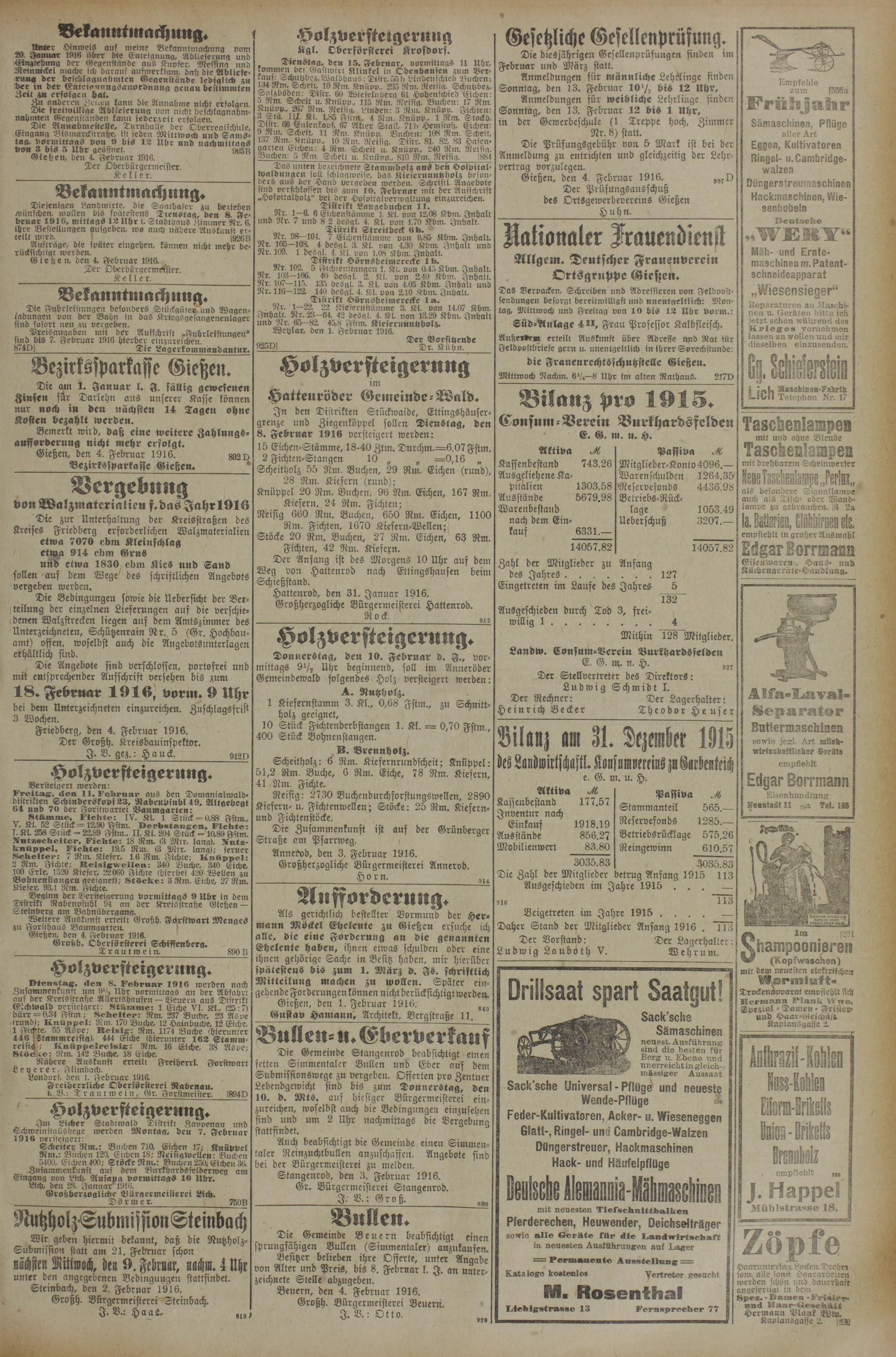 5.2.1916 Zweites Blatt
