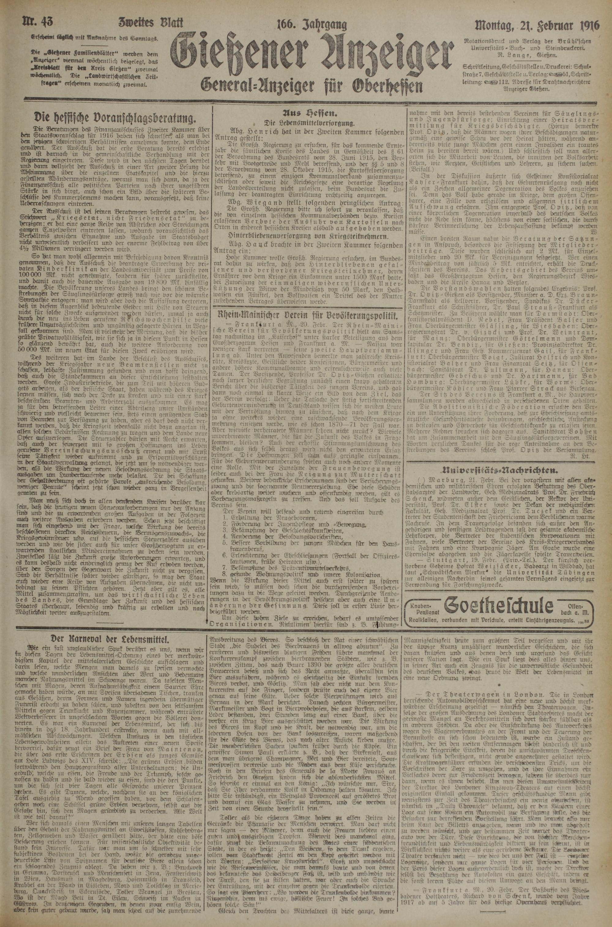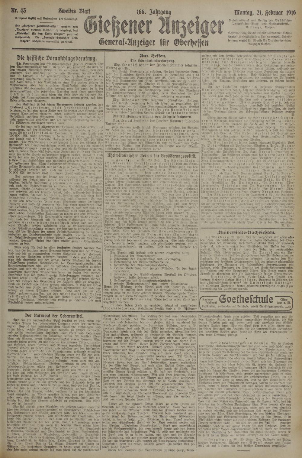 21.2.1916 Zweites Blatt