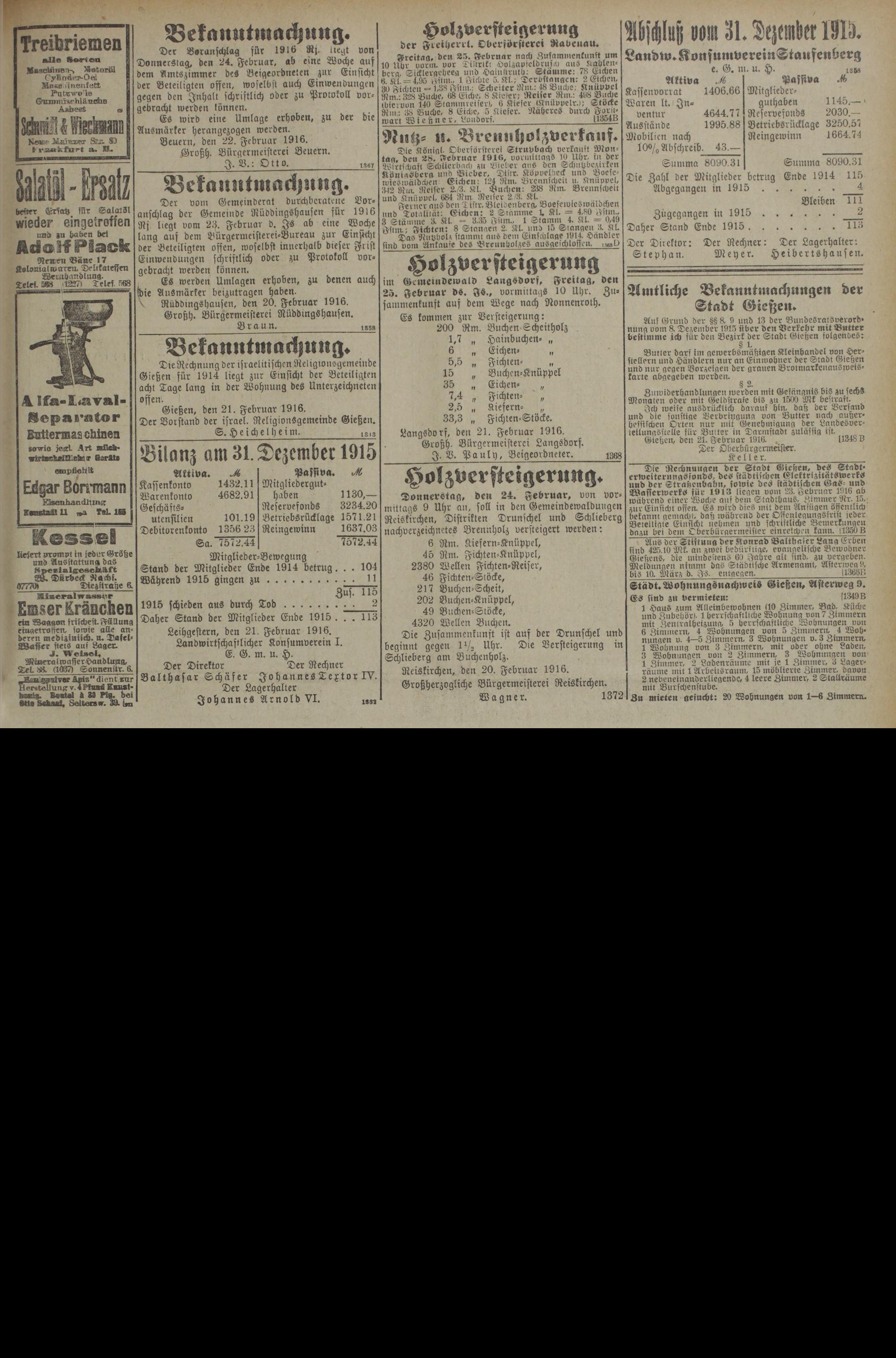 22.2.1916 Zweites Blatt