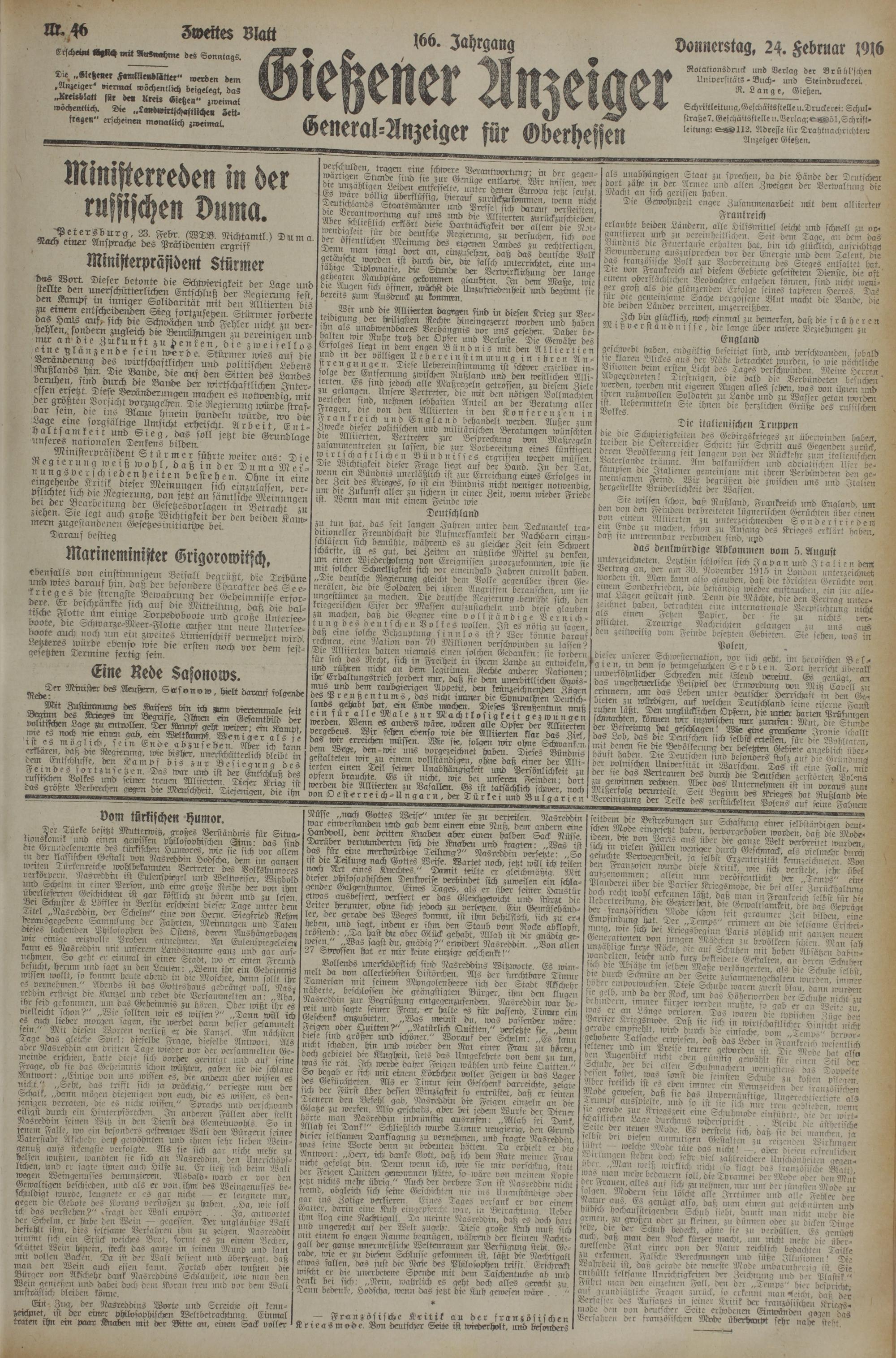 24.2.1916 Zweites Blatt
