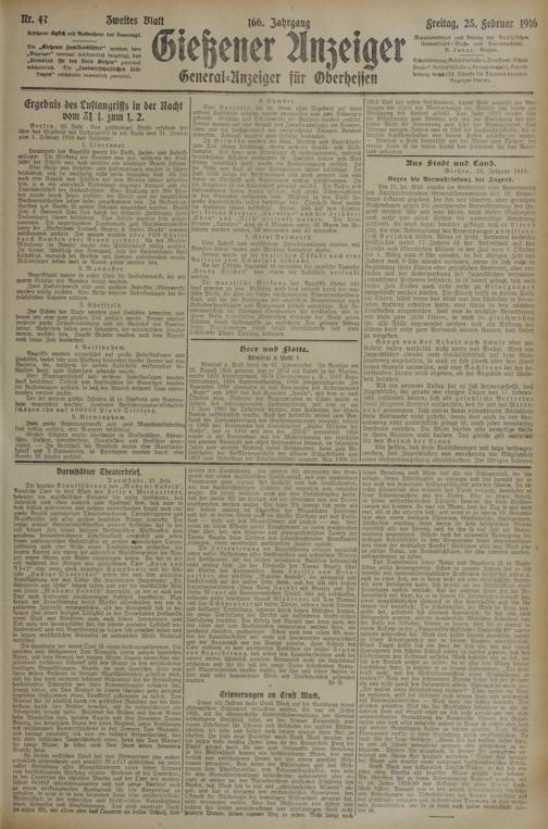 25.2.1916 Zweites Blatt