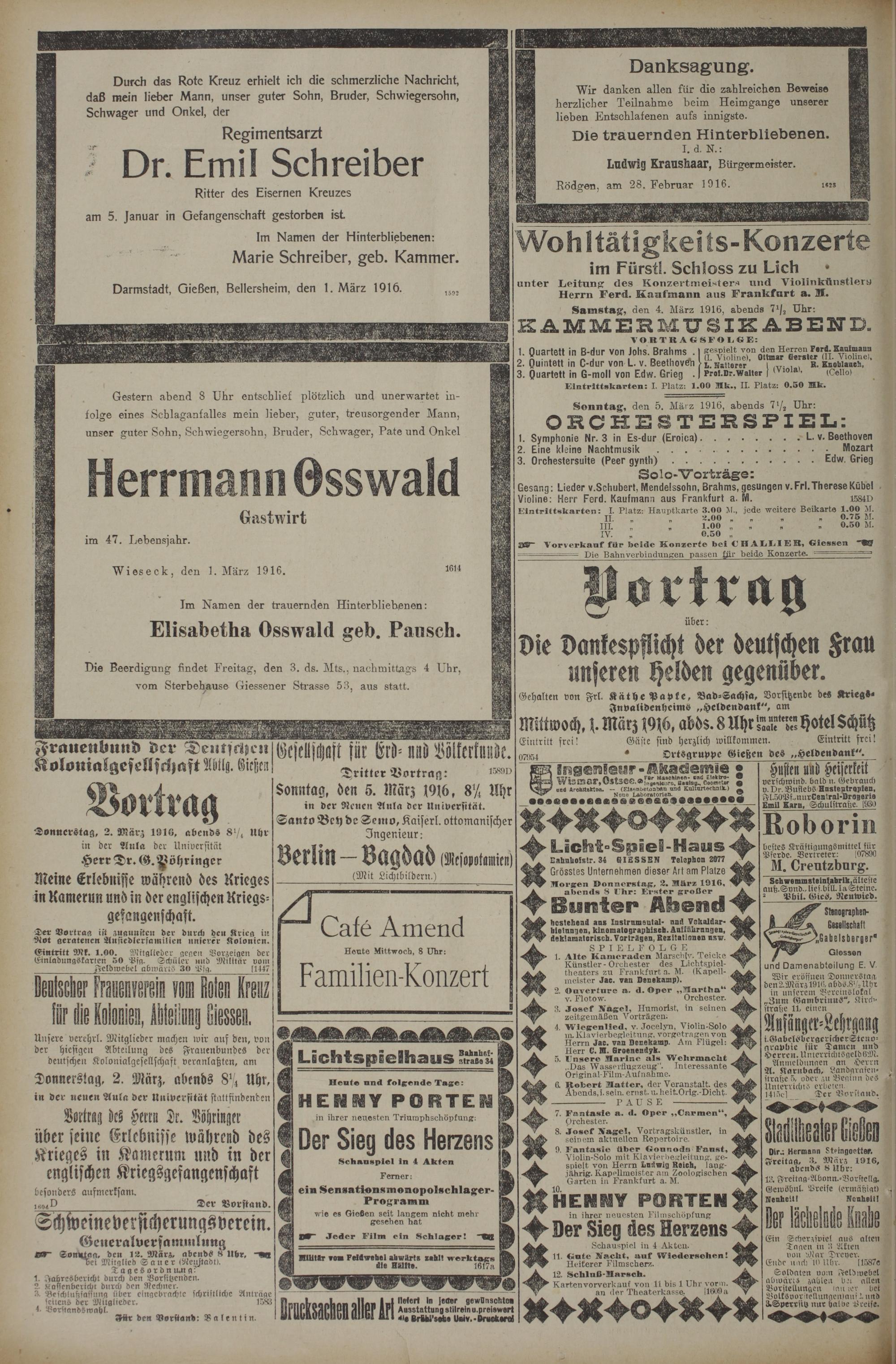 1.3.1916 Erstes Blatt
