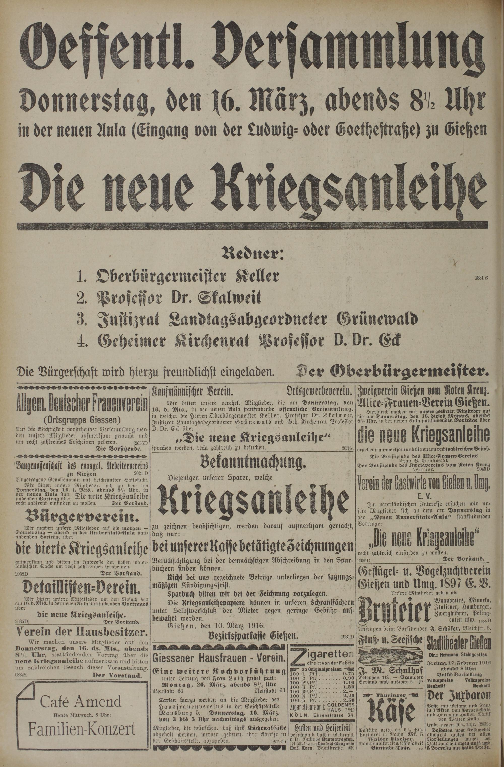 15.3.1916 Erstes Blatt