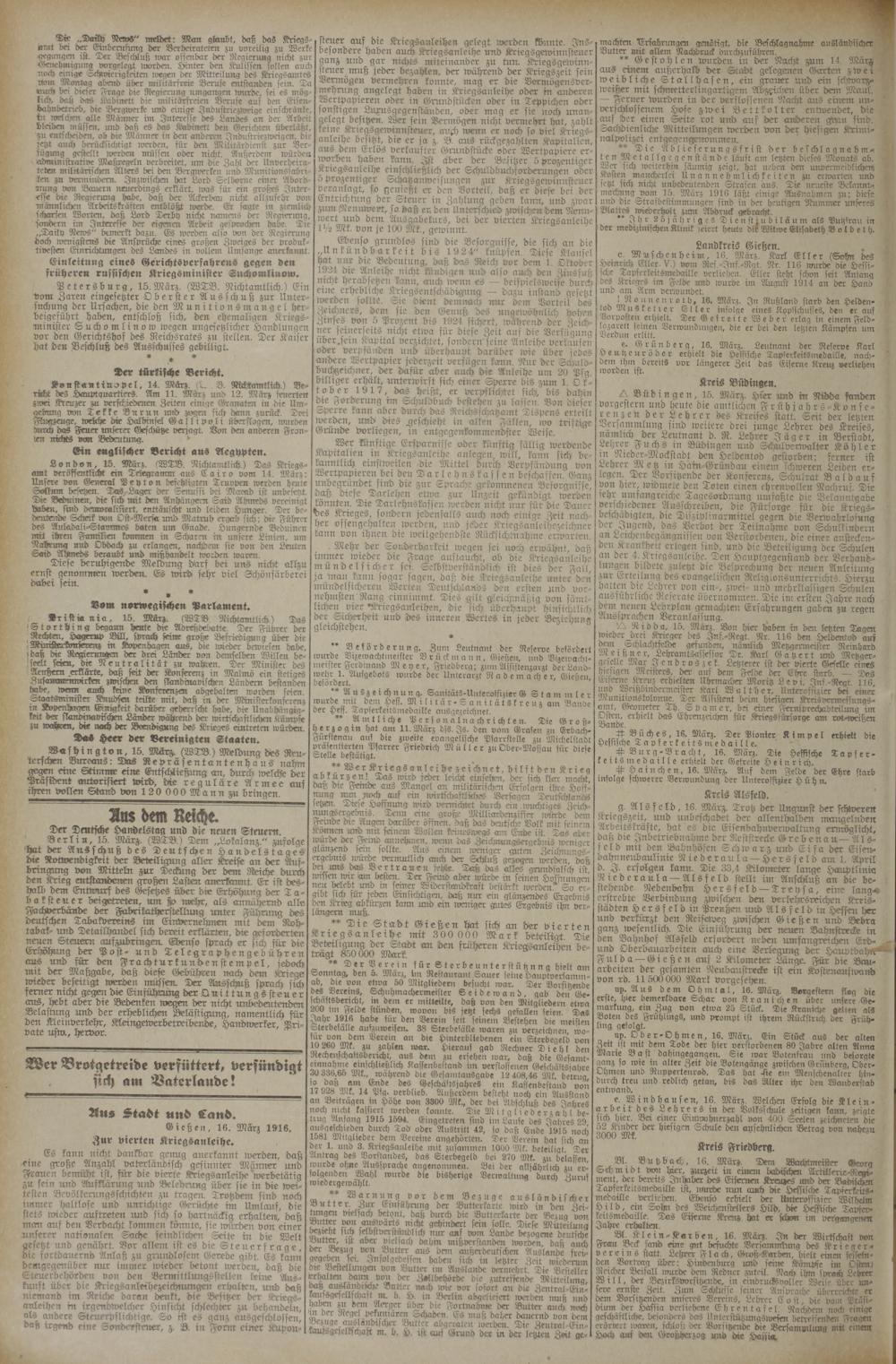 16.3.1916 Erstes Blatt