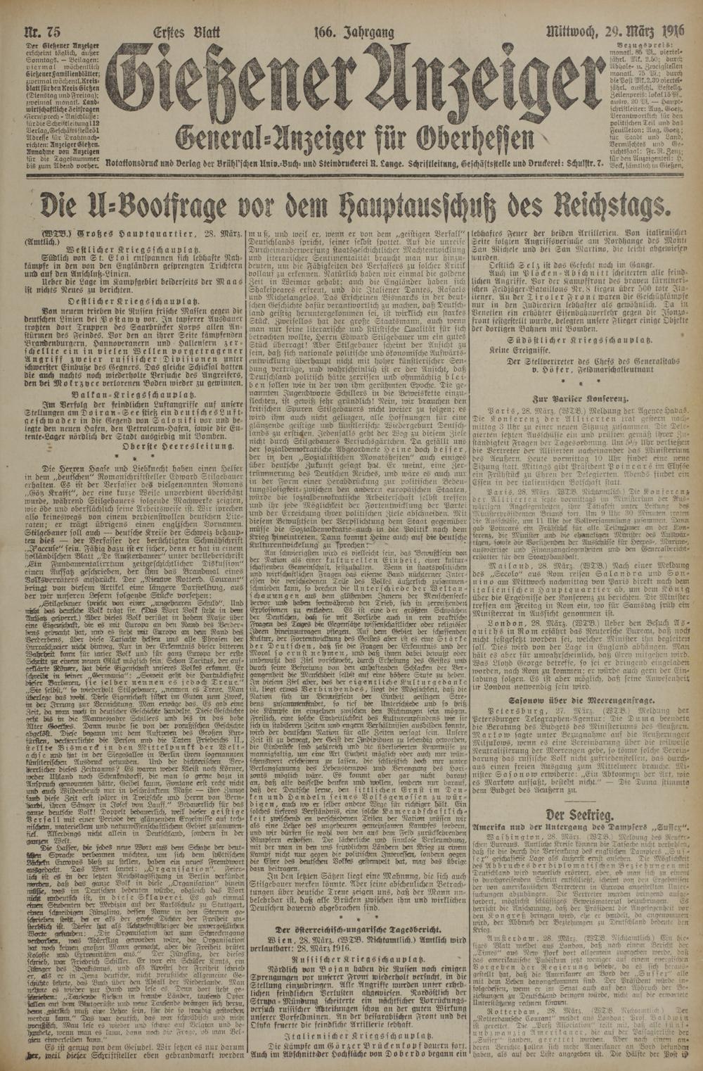 29.3.1916 Erstes Blatt