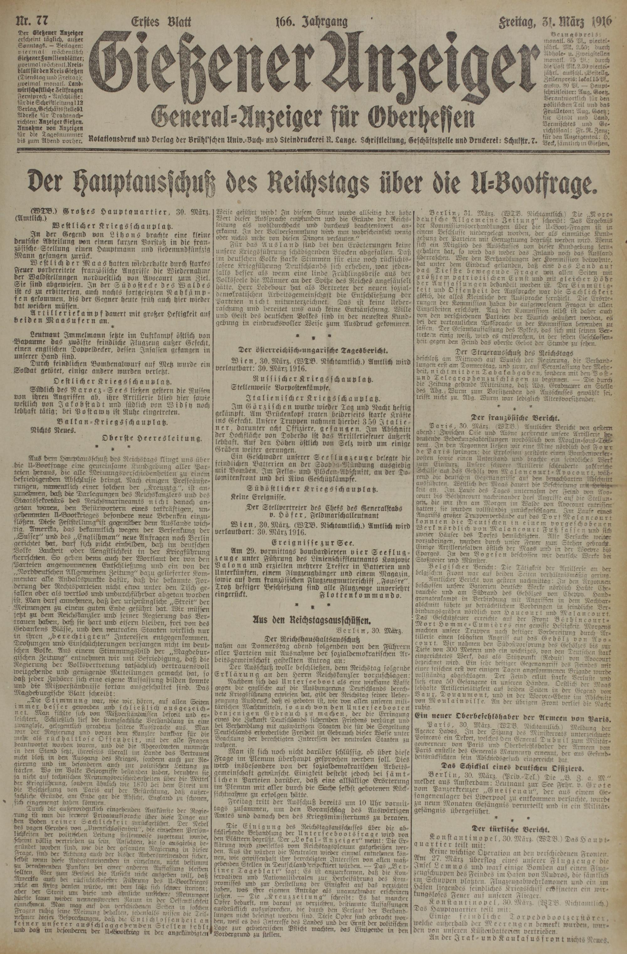 31.3.1916 Erstes Blatt