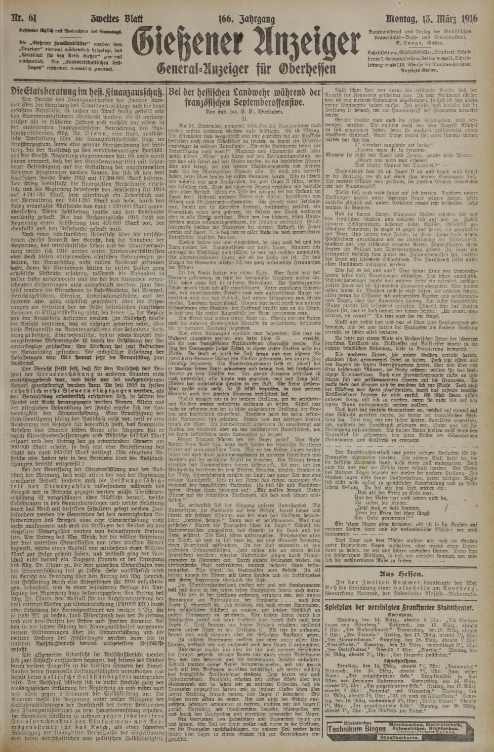 (13.3.1916) Zweites Blatt
