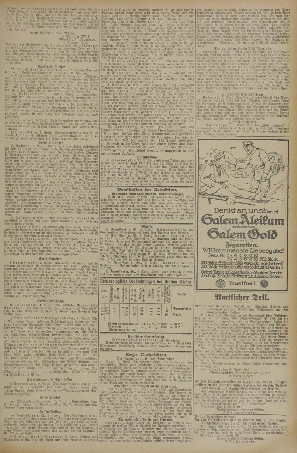 5.4.1916 Erstes Blatt