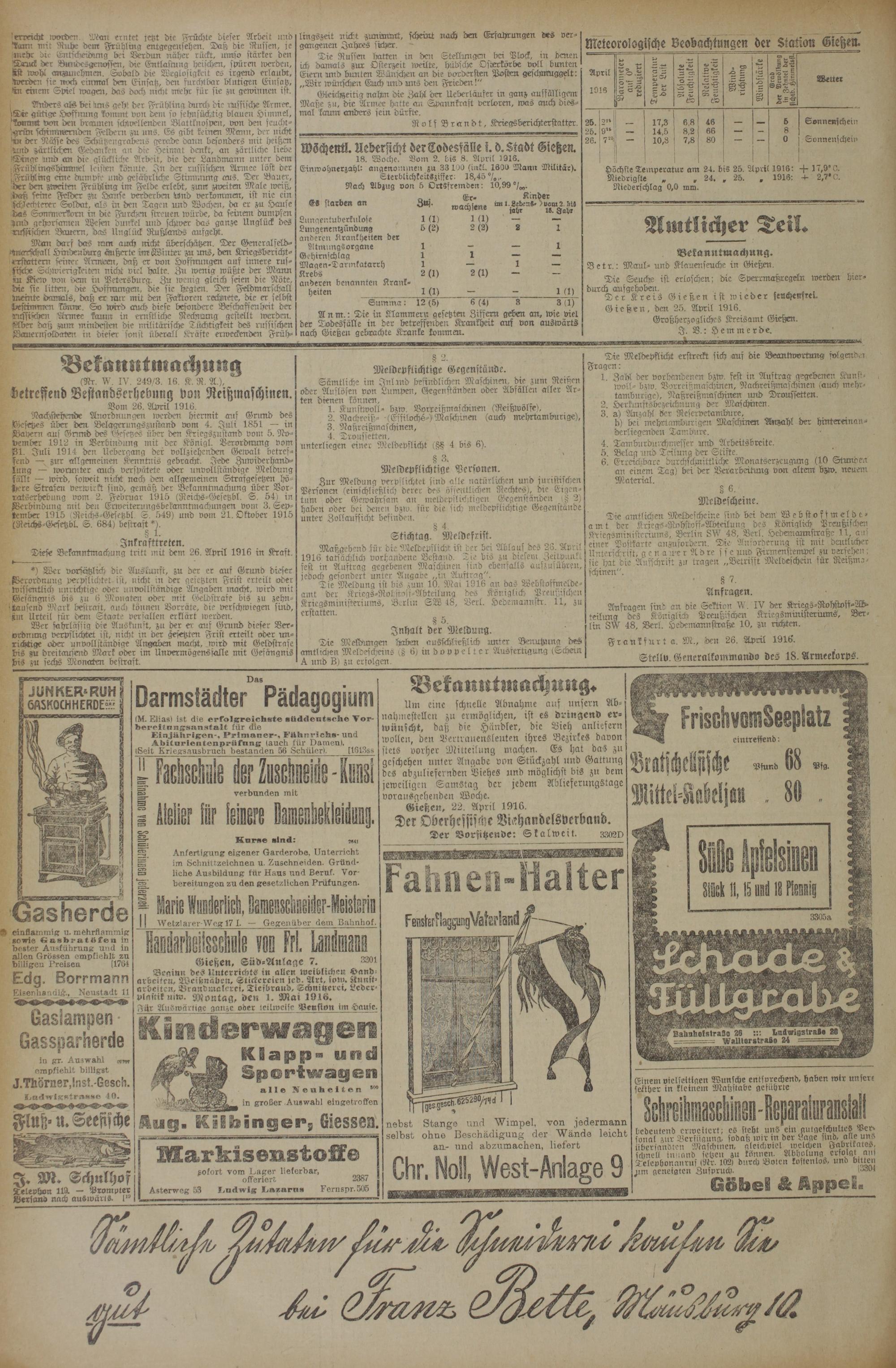 26.4.1916 Zweites Blatt