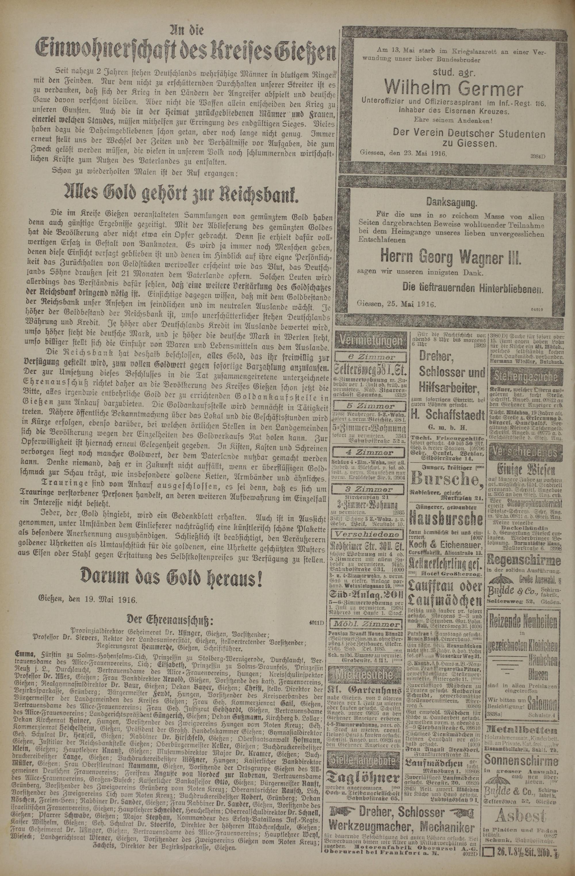 25.5.1916 Erstes Blatt