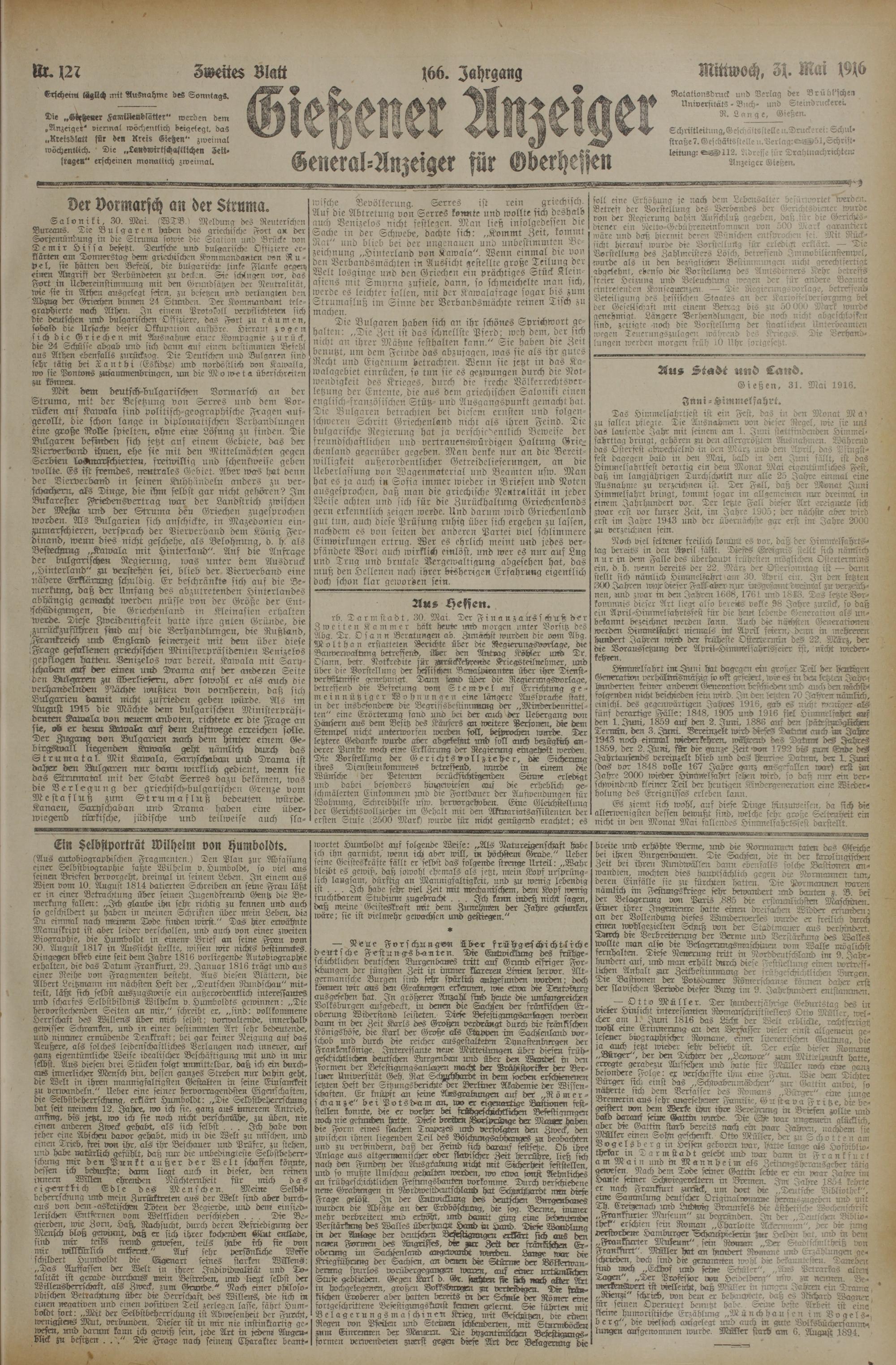 31.5.1916 Zweites Blatt