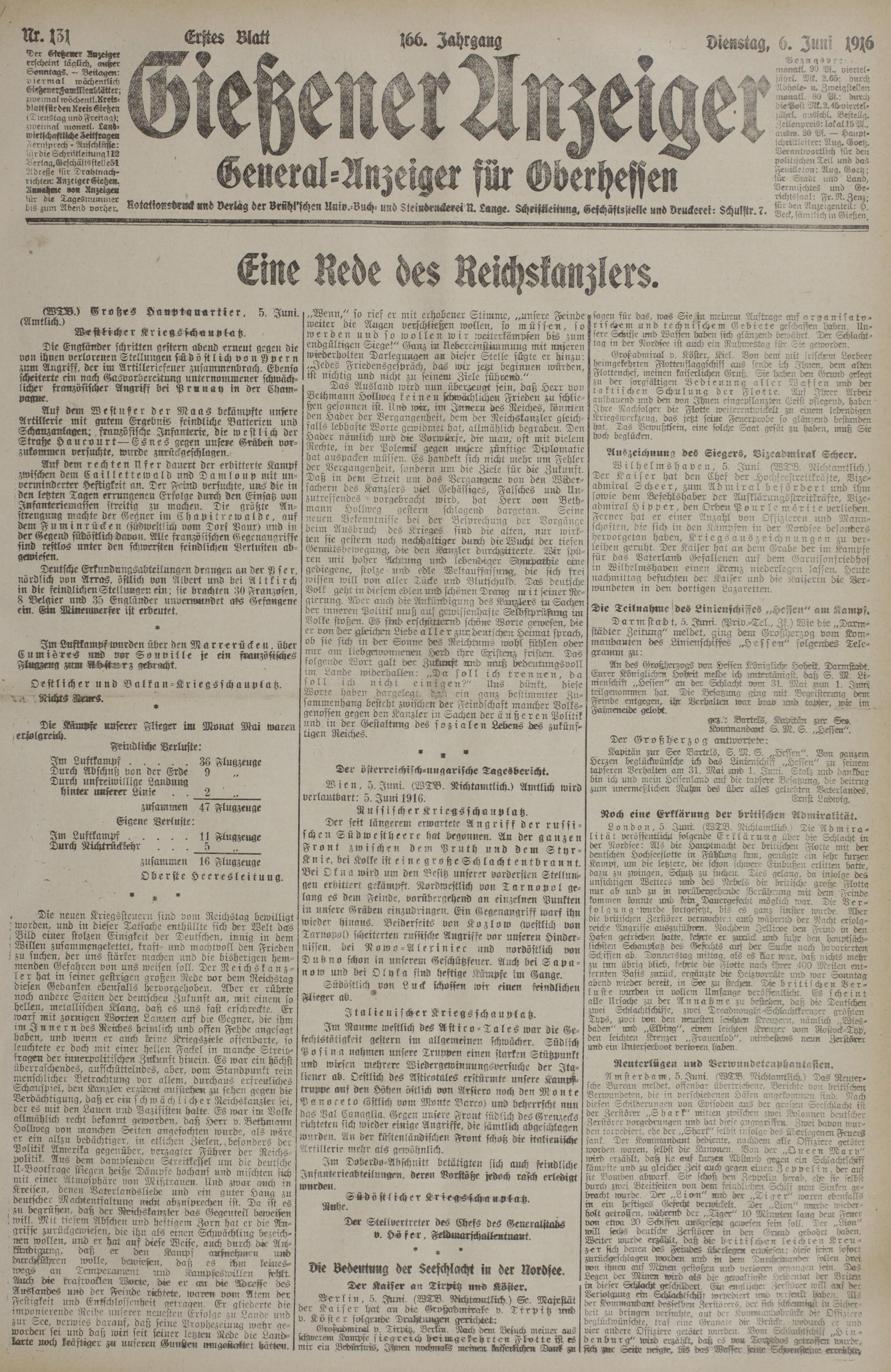 6.6.1916 Erstes Blatt