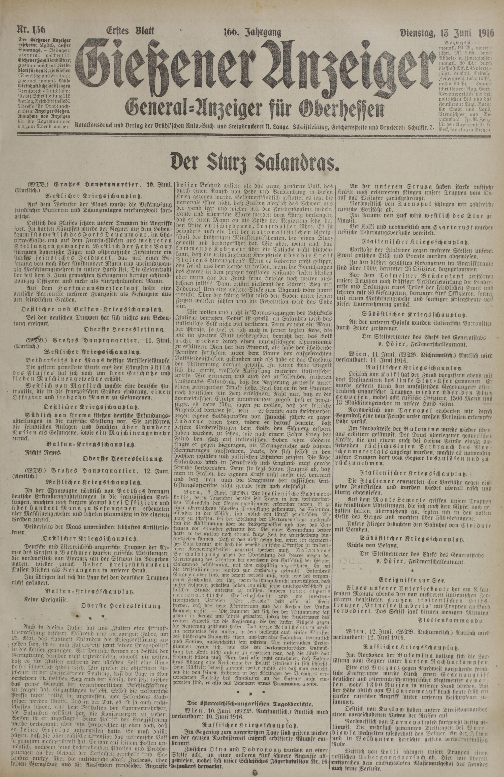 13.6.1916 Erstes Blatt