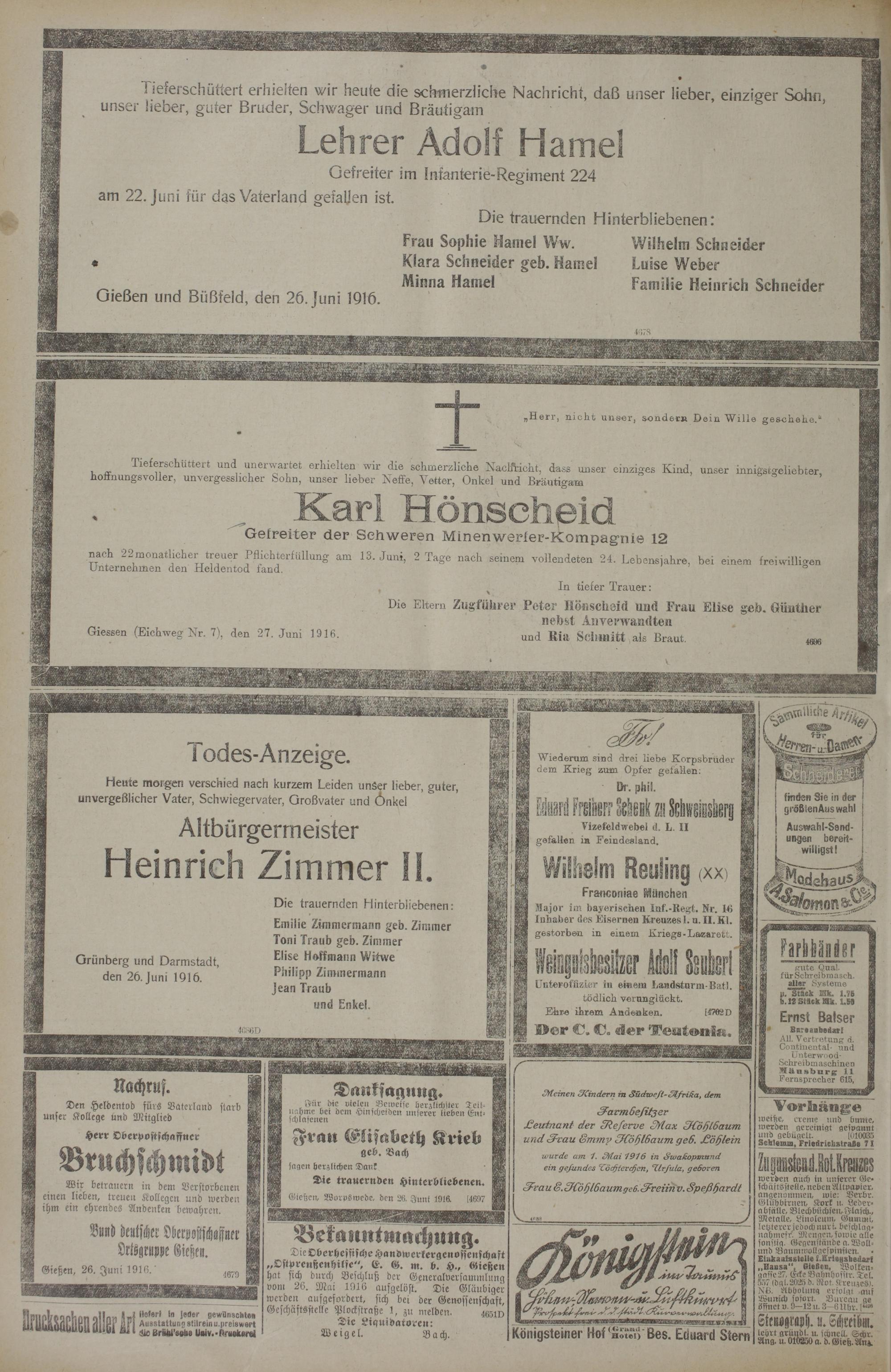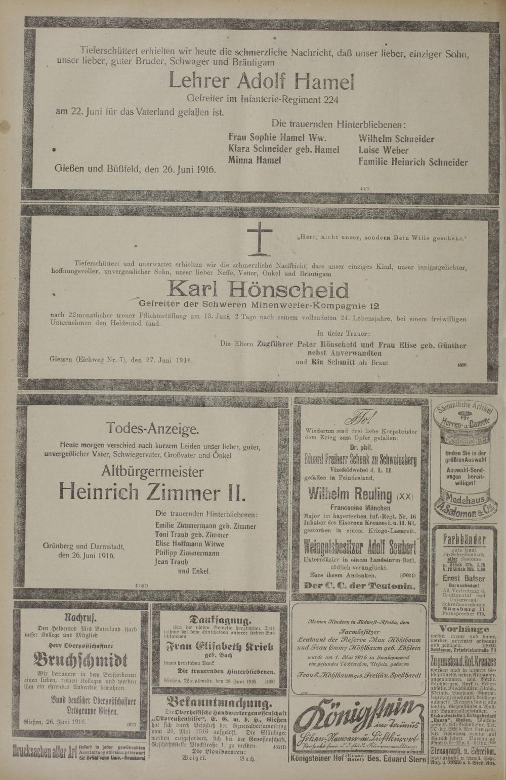 27.6.1916 Erstes Blatt