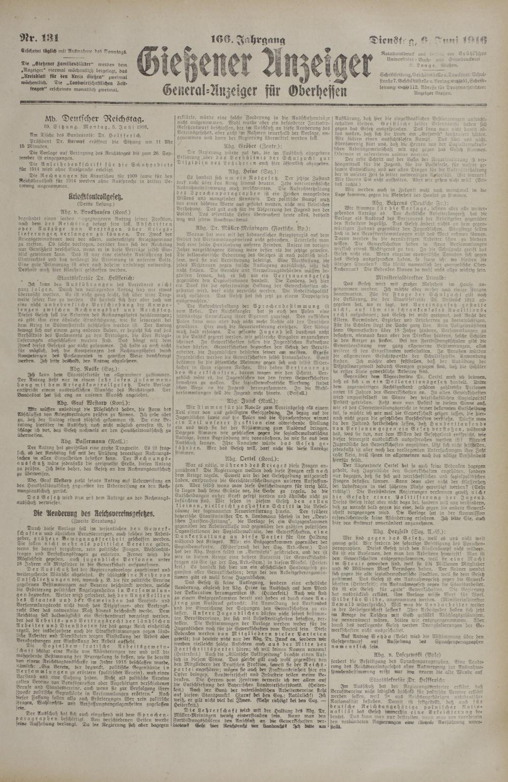 Gießener Anzeiger. 1868-1943