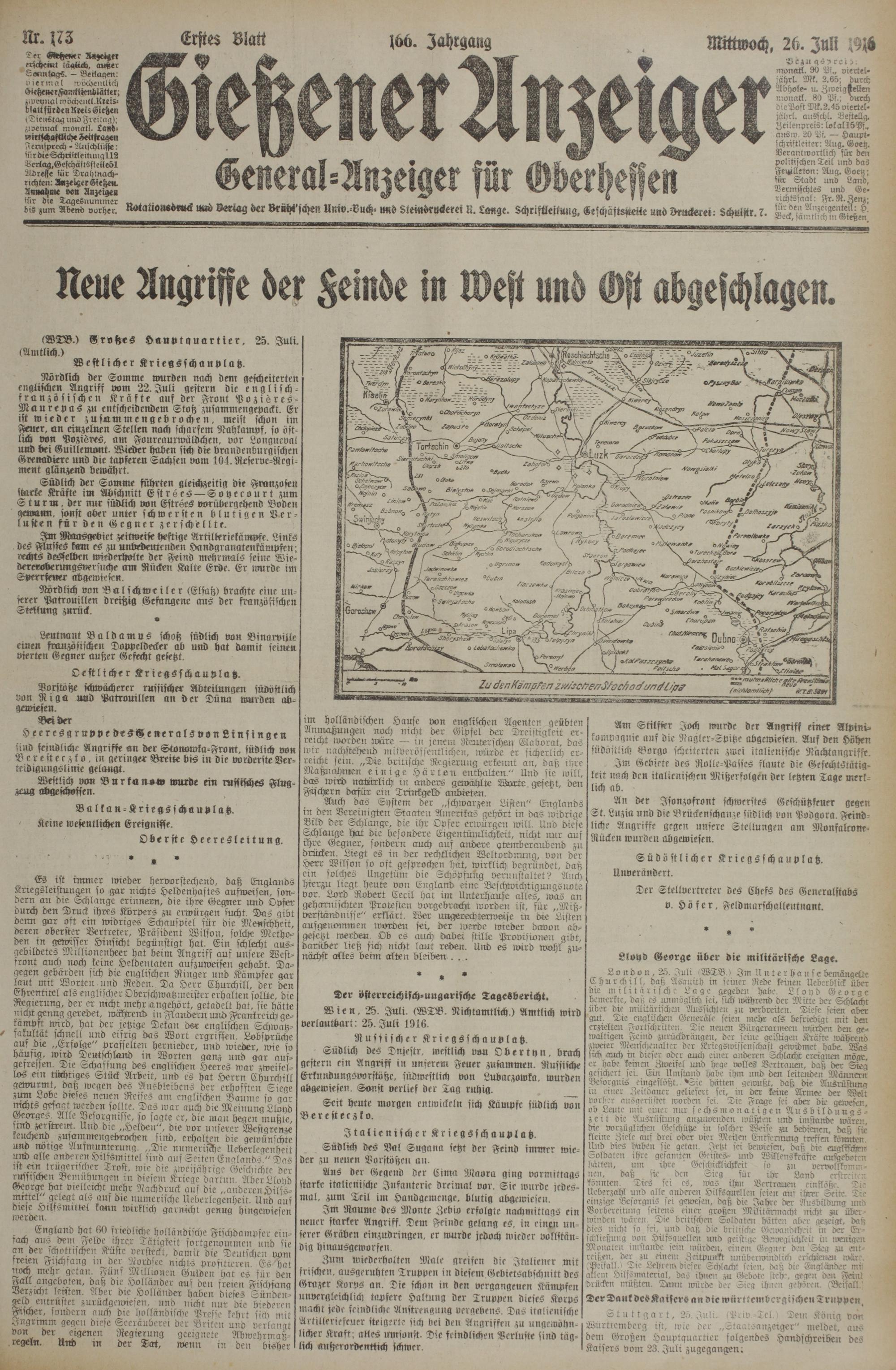26.7.1916 Erstes Blatt