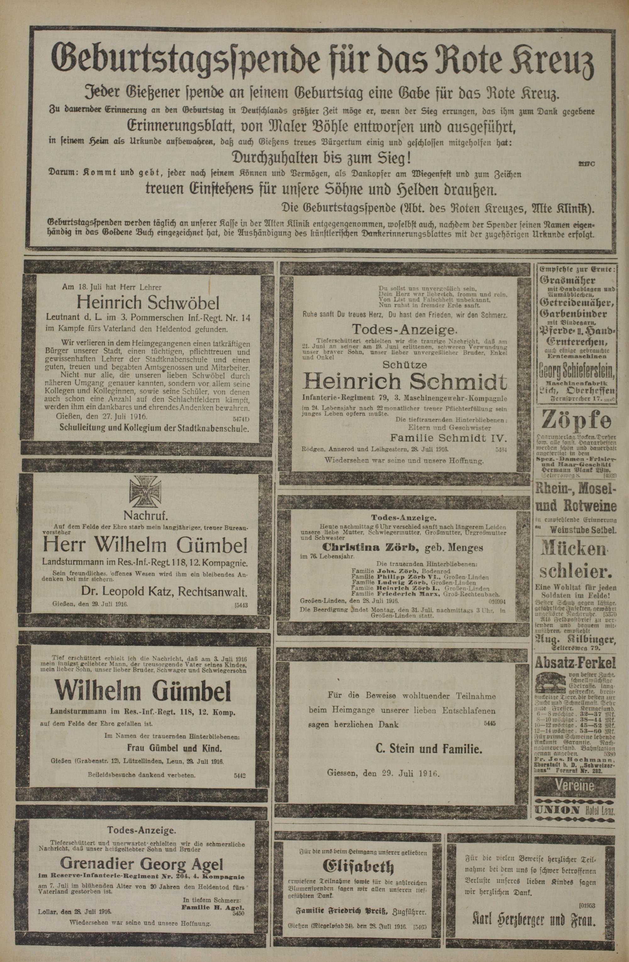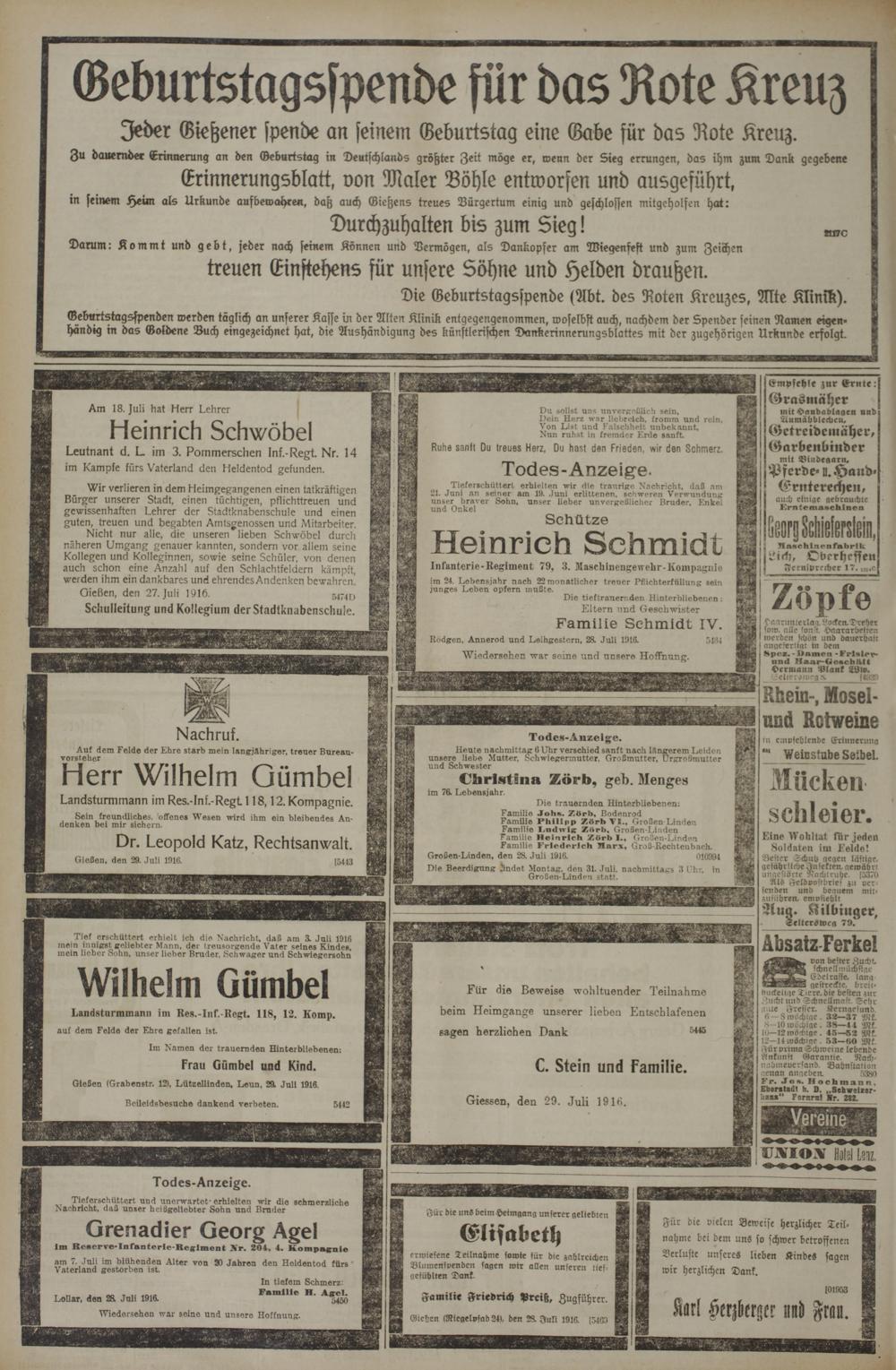 29.7.1916 Erstes Blatt